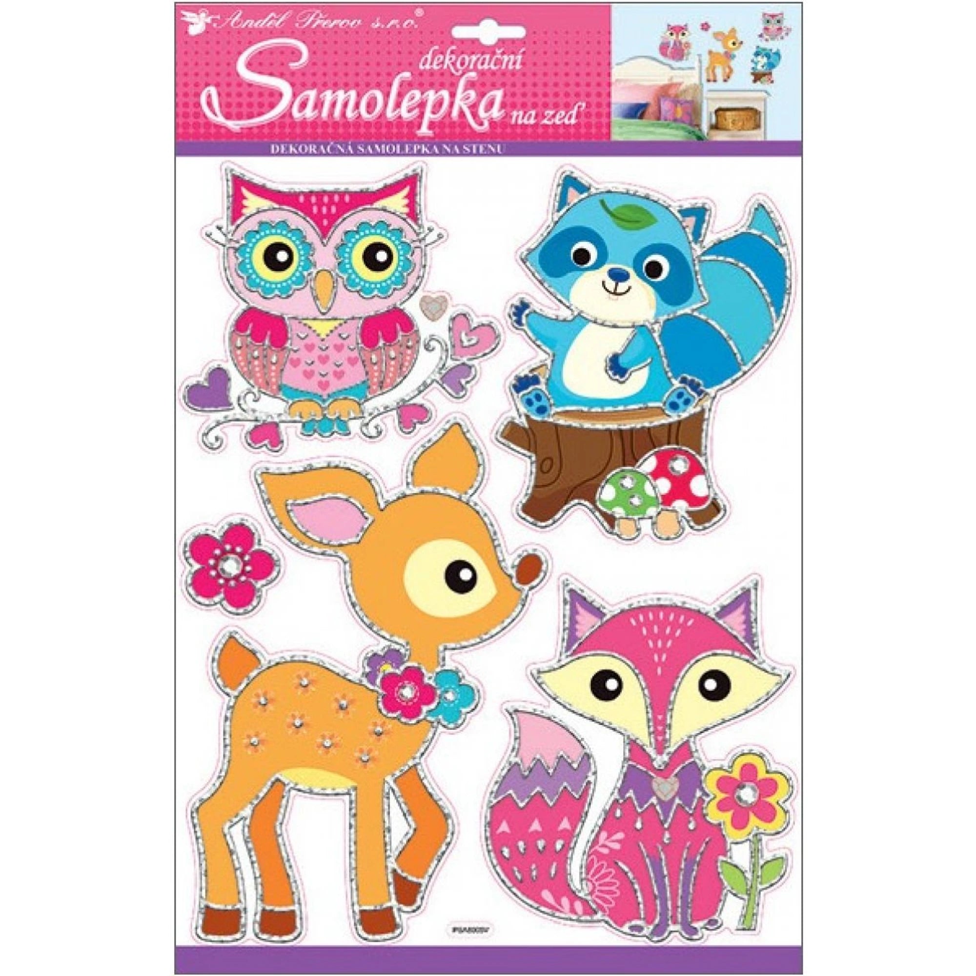 Lesní zvířátka si odskočila z lesa rovnou na samolepku na zeď nebo okno – a v dětském pokoji to hned začne šustit dobrodružstvím.