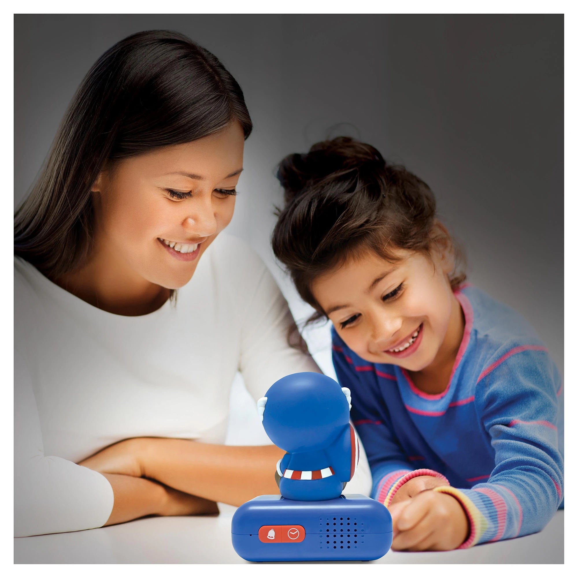 Tento roztomilý budík má všechno pro klidný spánek a probuzení bez dramatu! S intuitivními ovládacími tlačítky lze hravě nastavit čas na podsvícené LCD obrazovce, která neruší spánek. Na výběr je několik tematických tónů budíku a k tomu zábavné zvukové efekty. Hlasitost je nastavitelná. Zářící 3D noční světlo se rozsvítí při stisknutí horní části zařízení nebo ve chvíli, kdy zazvoní budík! Světlo se po pár minutách automaticky zhasne, případně po opětovném stisku horní části. A pro všechny ranní povaleče je tu funkce odložení.