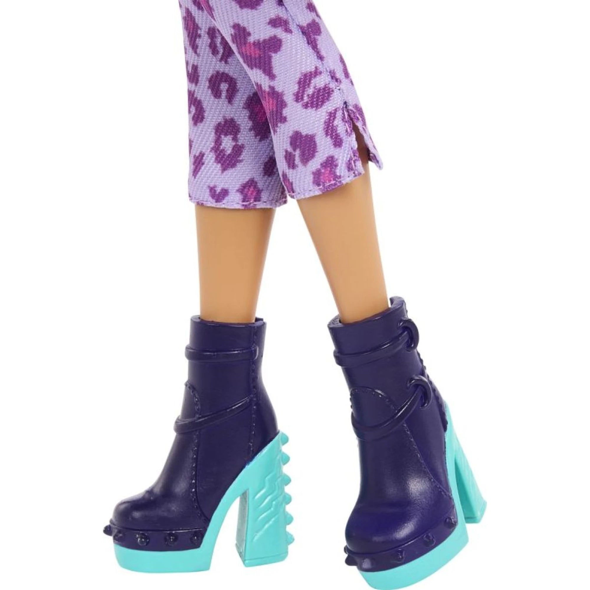 Příšerce z Monster High nechybí ani originální boty a zdobivý doplněk. Její strašidelnost je umocněná výrazným líčením. Monster vkus se nezapře v promakaných detailech: má kalhoty střižené pod kolena, top zdobený labutěnkou a na nohou vysoké boty. Je laděna do fialové, a její bohaté kadeře? Ty by klidně měly vlastní fanclub.