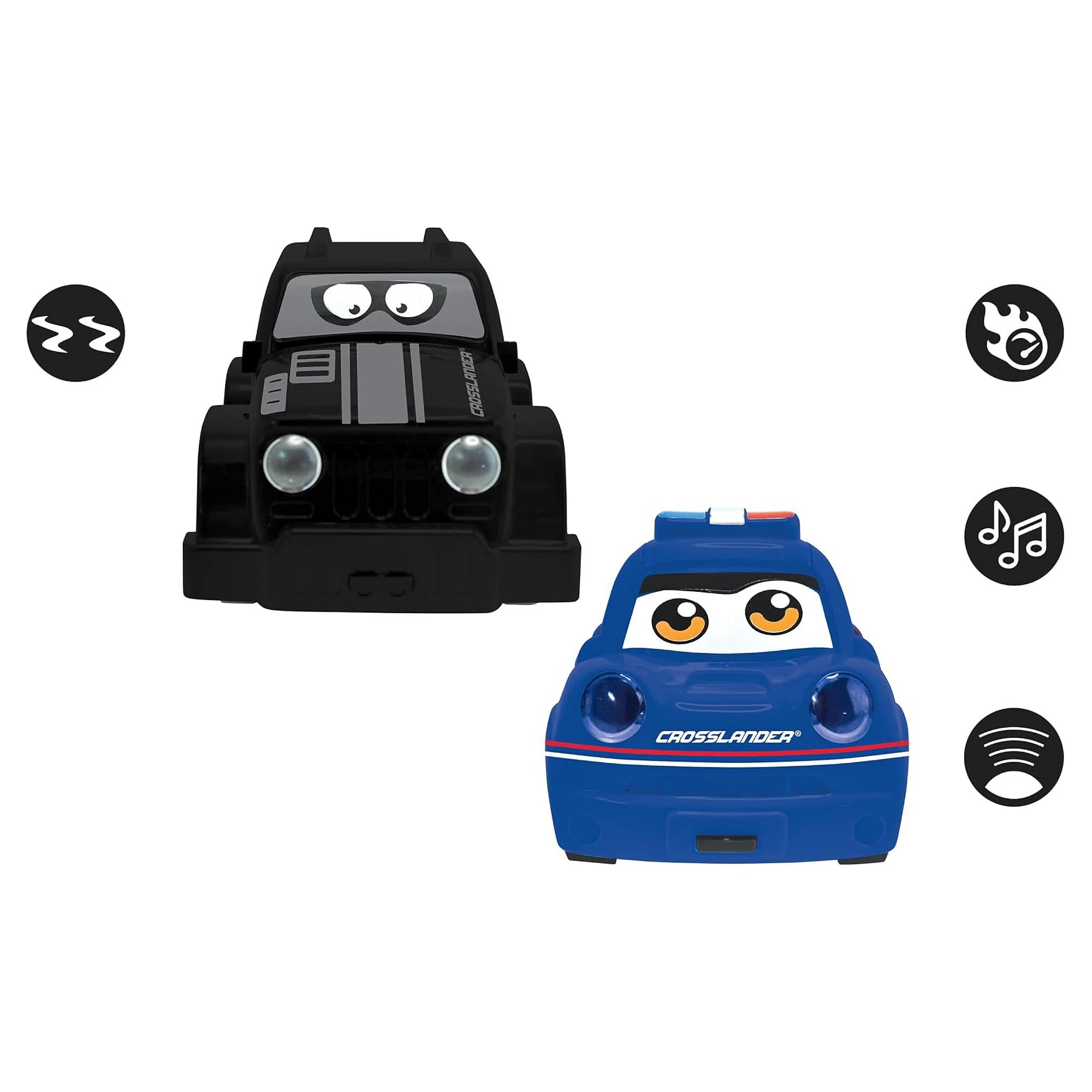 Policejní a zlodějské auto pro děti Crosslander® Twin jsou ideální parťáci na napínavé honičky a závody. Auta ovládáš přes dálkový ovladač ve tvaru volantu na frekvenci 2,4 G, který zajišťuje snadnou manipulaci a přesné řízení až do vzdálenosti 15 metrů. G senzor usnadňuje zapínání i vypínání funkcí aut pro lepší kontrolu. Zvukové efekty dodají akci realističnost a rychlost až 12 km/h přidá pořádnou dávku adrenalinu.