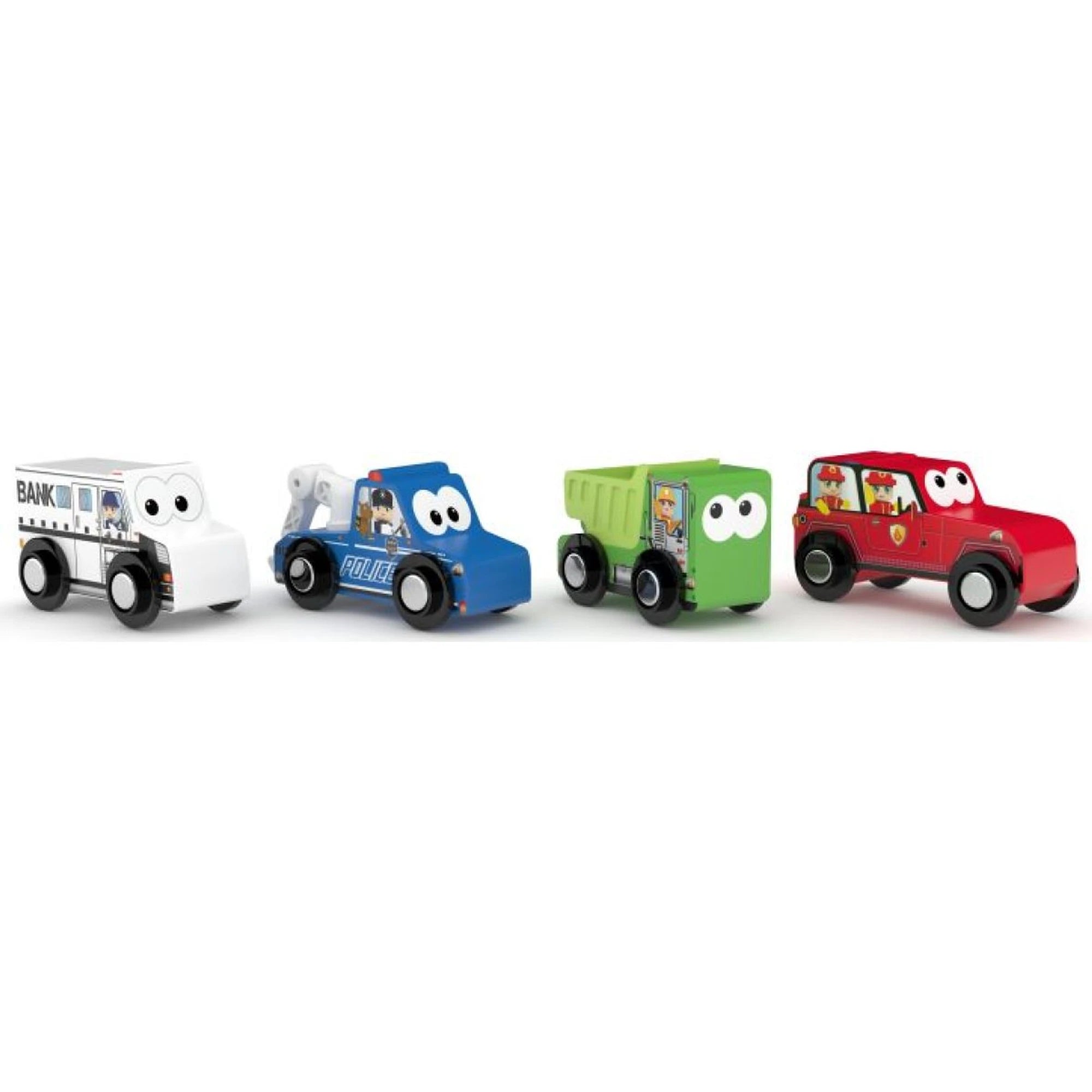 Nastartuj fantazii a vyraz na dřevěné dobrodružství! Tahle sada 4 přírodních dřevěných vozidel rozjíždí zábavu bez benzínu a povzbuzuje roleplay a vyprávění příběhů.