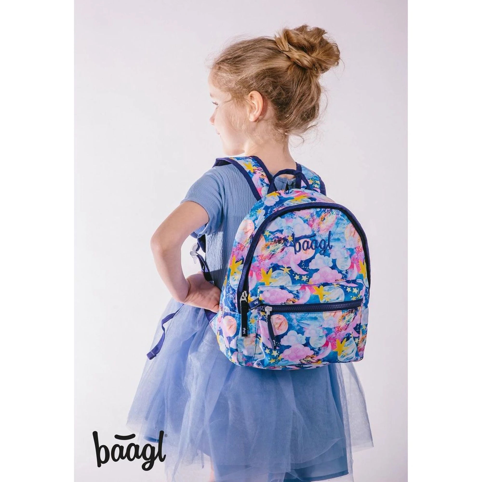 Batůžek s motivem pestrobarevné oblohy je jako dělaný pro děti předškolního věku.