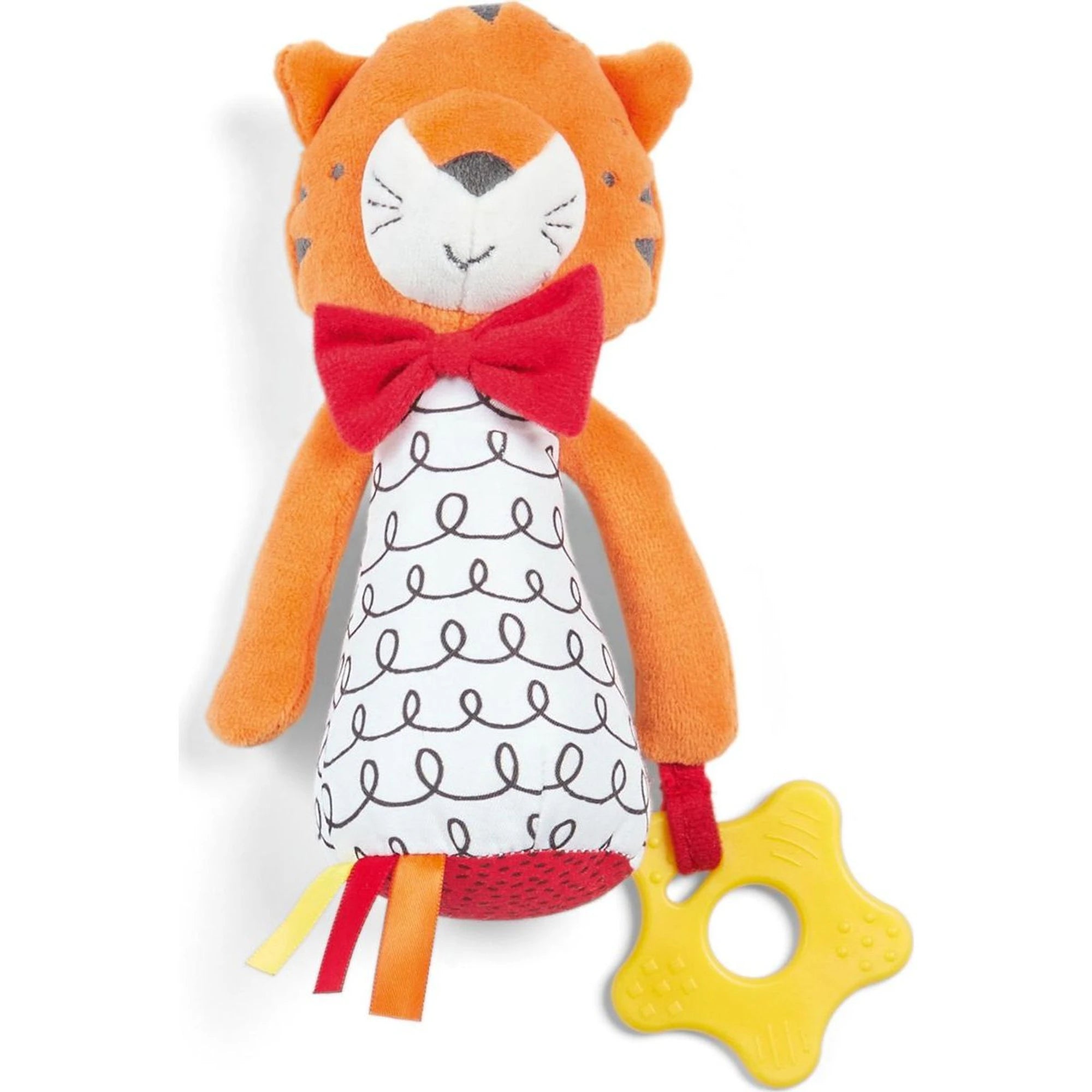Textilní chrastítko v podobě tygříka, který má v tlapce kousátko – kousání povoleno! Uleví nateklým dásním při prořezávání zoubků. Když s ním malí objevitelé zatřesou, pěkně zachrastí. Je z příjemného materiálu, takže se k němu dá snadno přitulit.