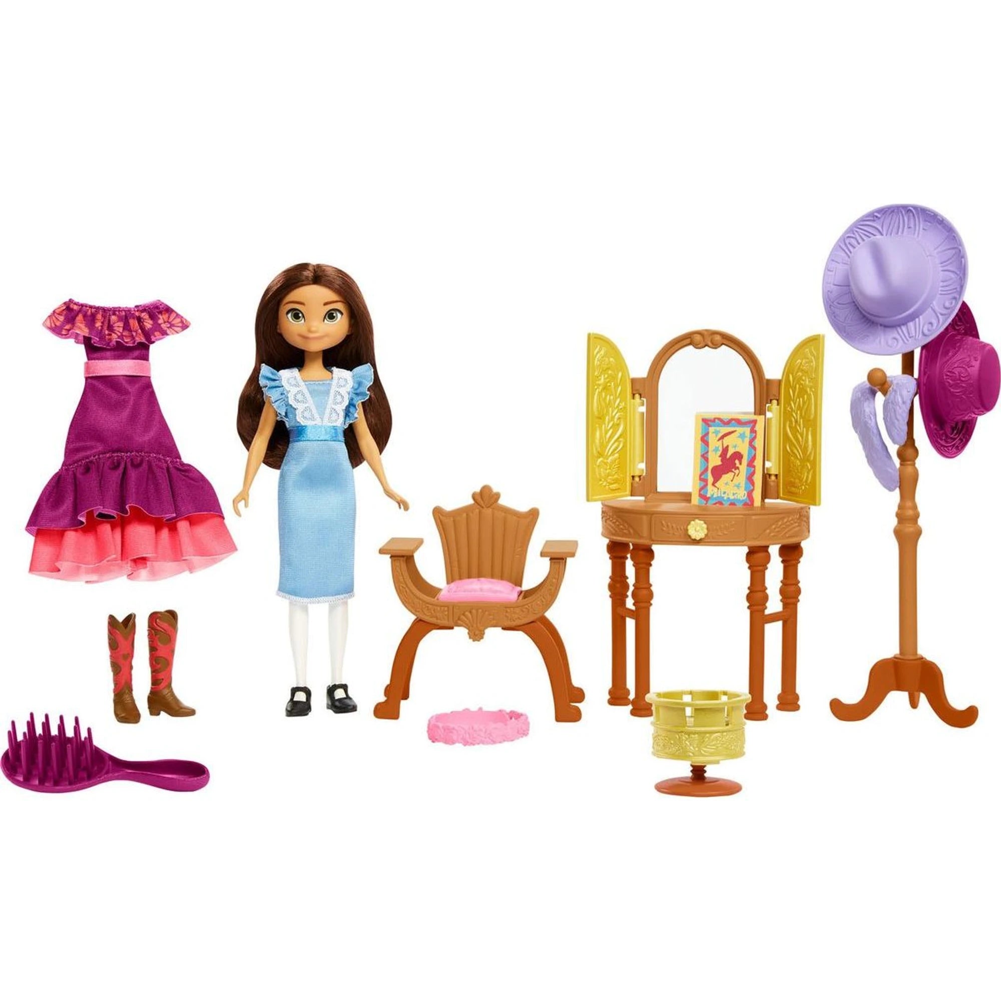 Herní set panenky Štístka zve do jejího pokojíku a láká k přehrání příběhů z animáku Spirit od DreamWorks. Panenka má festivalový outfit – vínové šaty a fialový klobouk, který se dá snadno vyměnit za druhý klobouk z věšáku. Před slavností ji klidně vyparáděte u zrcadla – ať je hvězda večera.