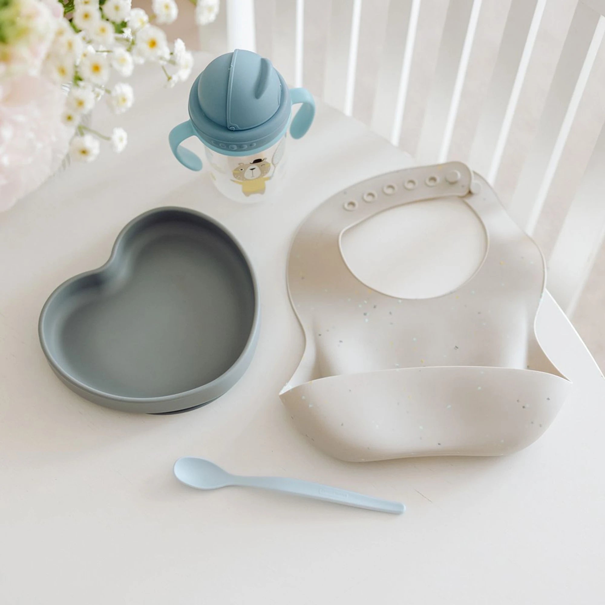 Silikonový bryndák má šikovnou kapsu, která zachytí odpadlé kousky jídla i kapičky u pusinky. Tričko si může dát pauzu.