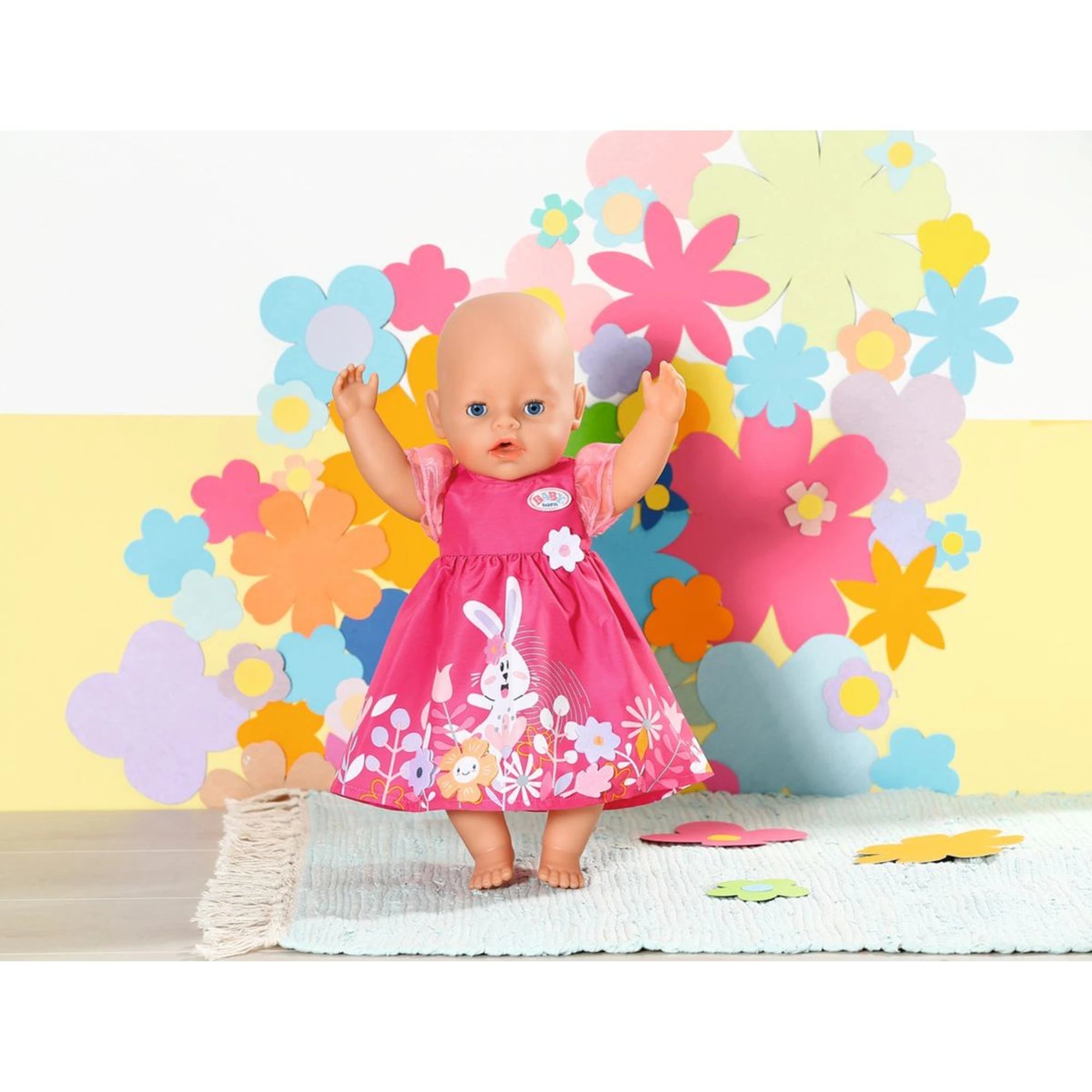 Růžové šaty s krátkými rukávky, s hravou řasenou sukénkou, jsou čerstvý outfit pro panenku Baby Born do velikosti 43 cm.... Číst více