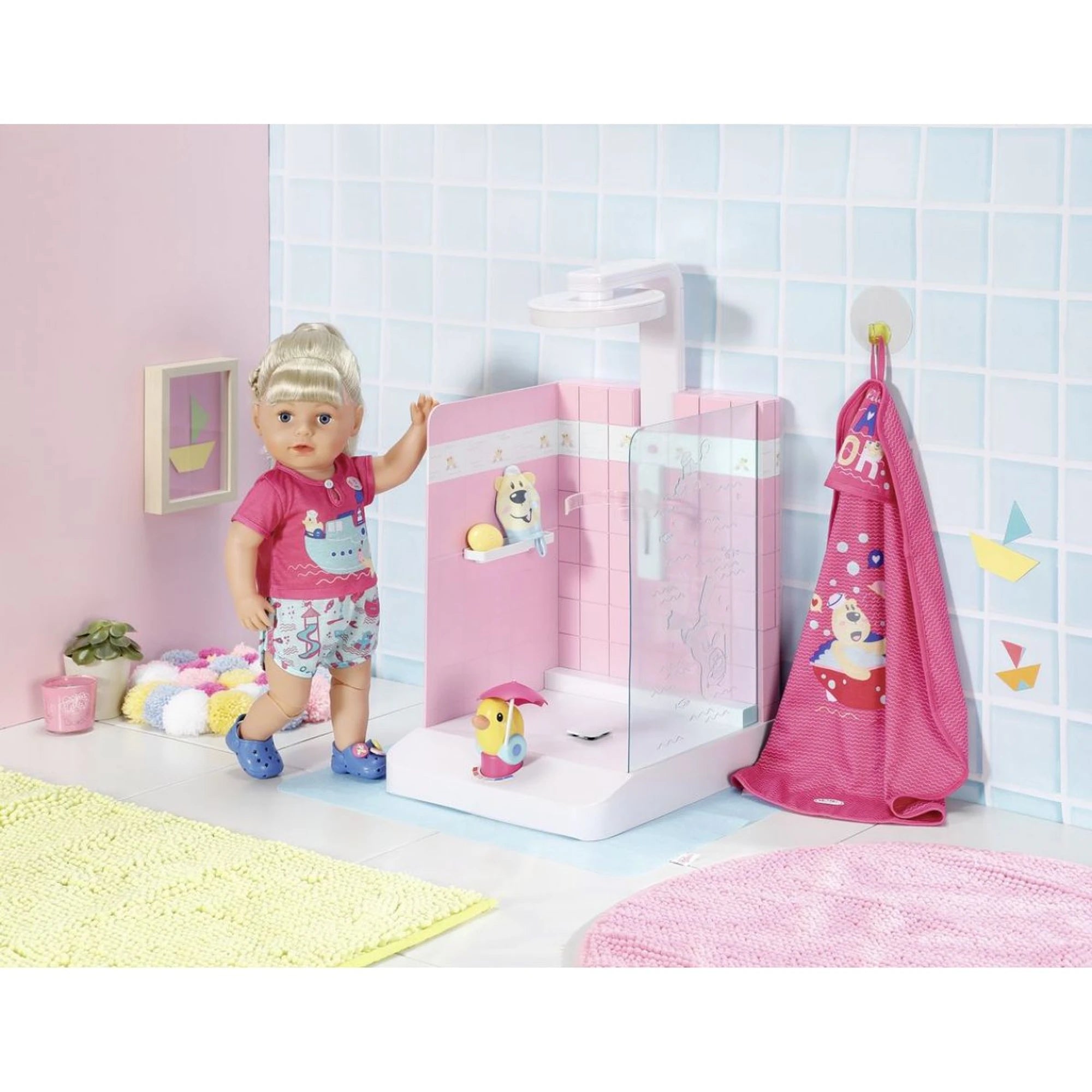 Růžový sprchový kout udělá z koupání panenek Baby Born malý wellness. Ovládání má na starosti kačenka Berta – a já Fantarius doporučuji připravit ručník, tahle sprcha je hit!