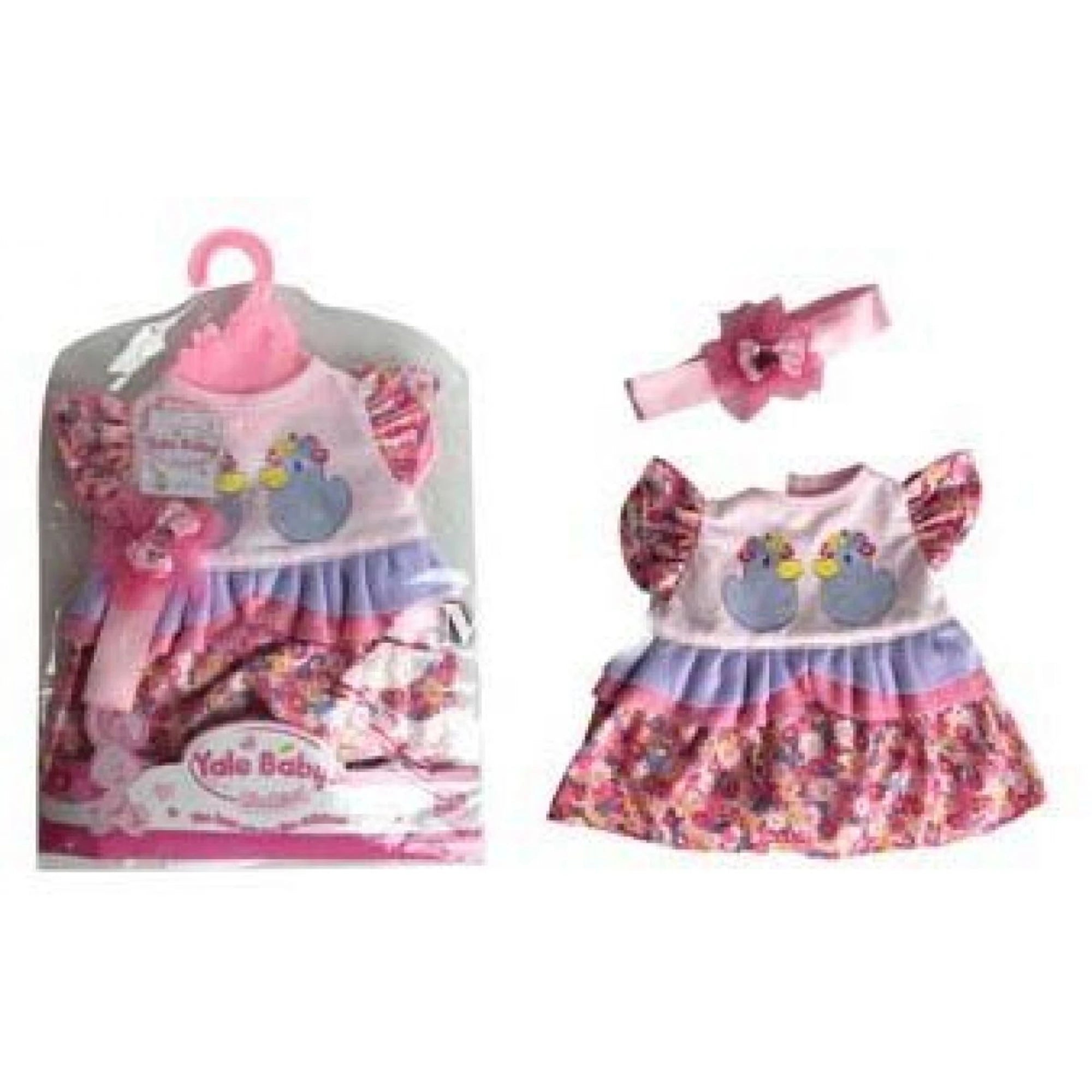 Mají krátké řasené rukávky a ladí převážně do růžova. V pase je řasený zdvojený lem a sukénka, stejně jako rukávky, jsou v květinovém vzoru. Vpředu na hrudníčku je obrázek dvou kačenek – roztomilost, co si získá i největšího bručouna.