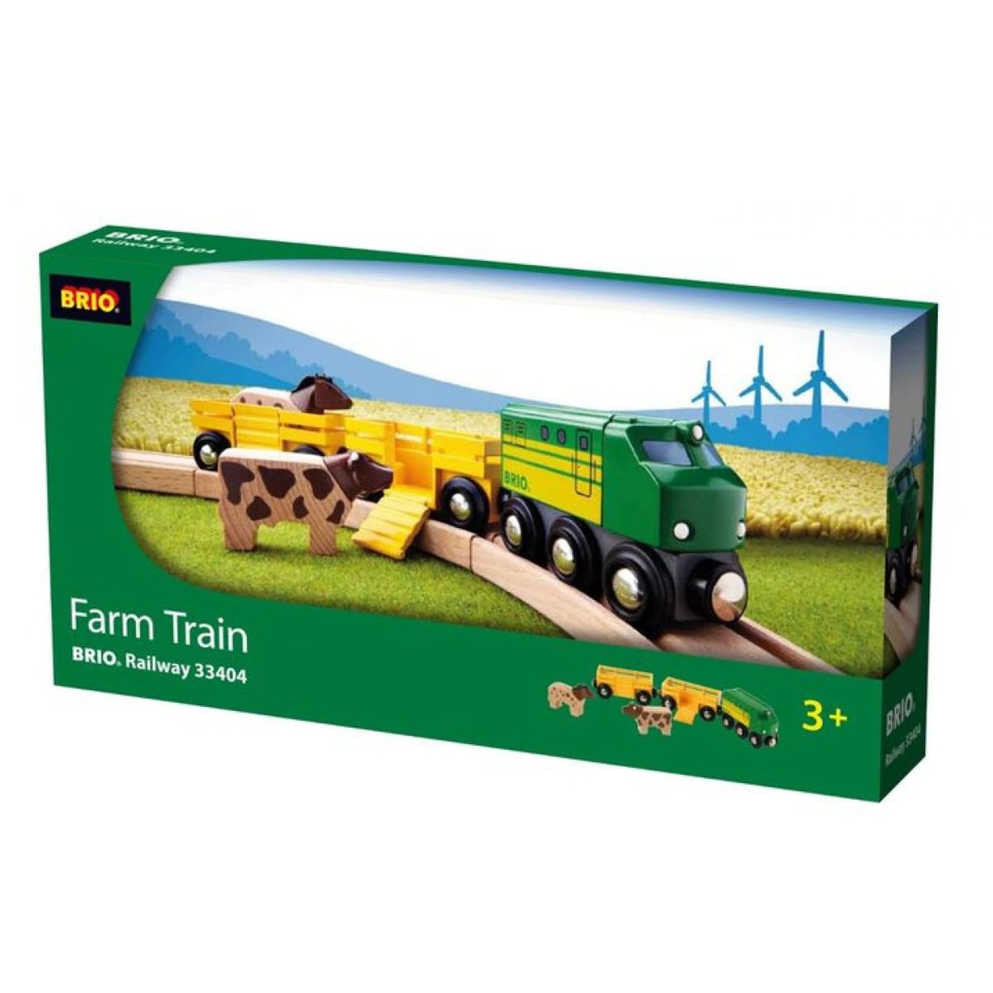 Vláček z farmy ve dvou nákladních vagónech veze kravičku a koníka. Sklopná rampa? Stačí cvak a zvířátka jsou venku rychleji než řekneš „múú“. Vláček je určen jako doplněk k rozšíření vláčkodrah Brio. A klid – kamarádí i s vláčkodráhami Maxim, Bino a Heros.