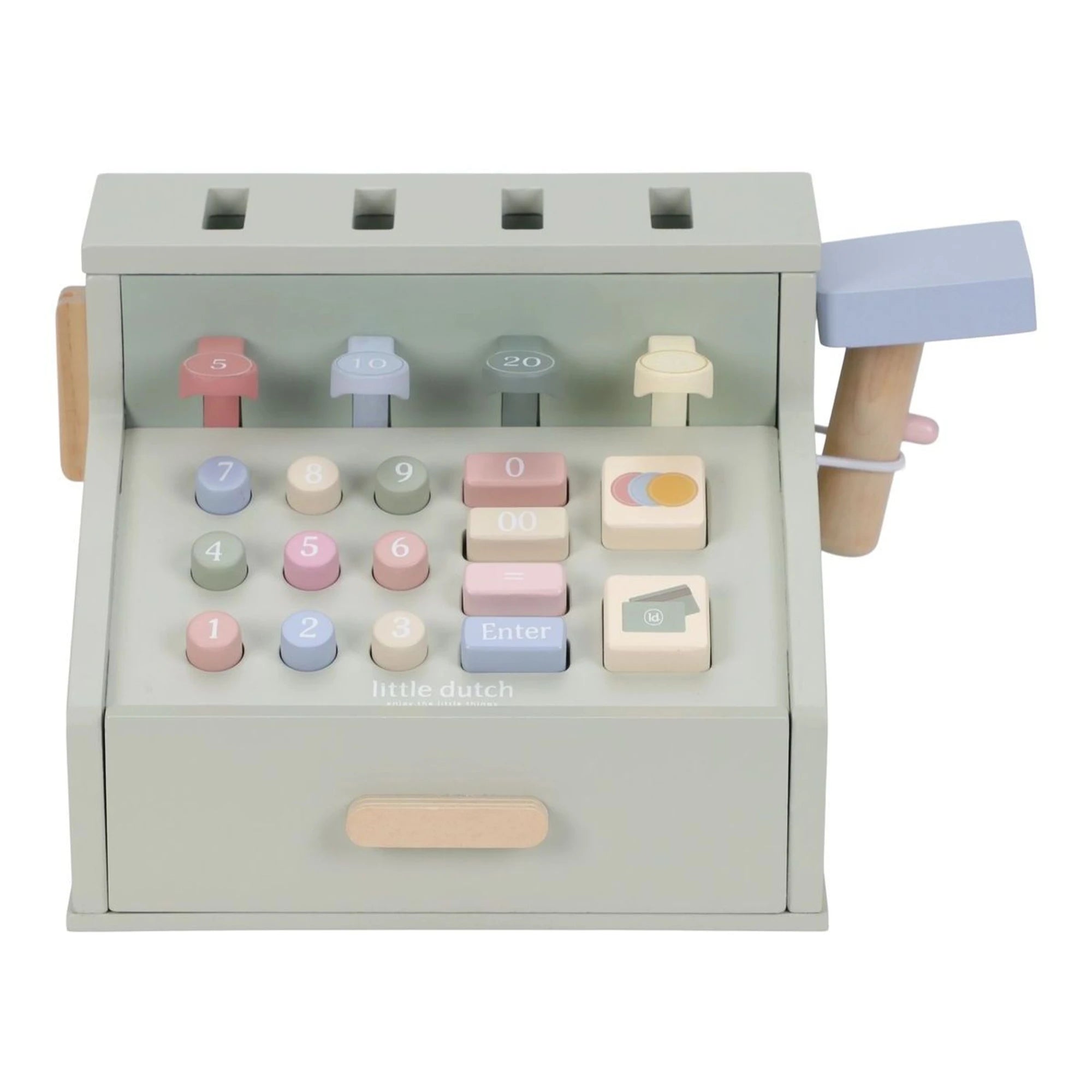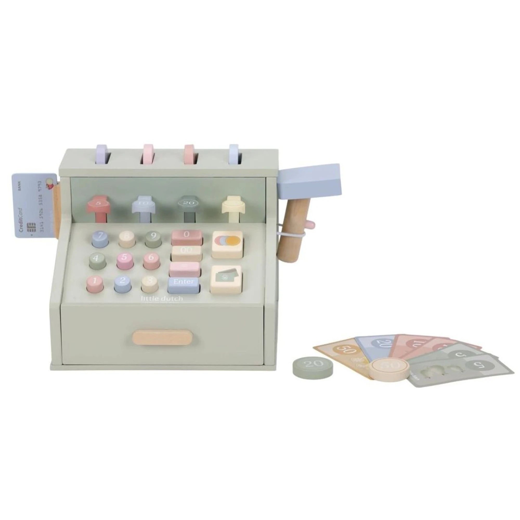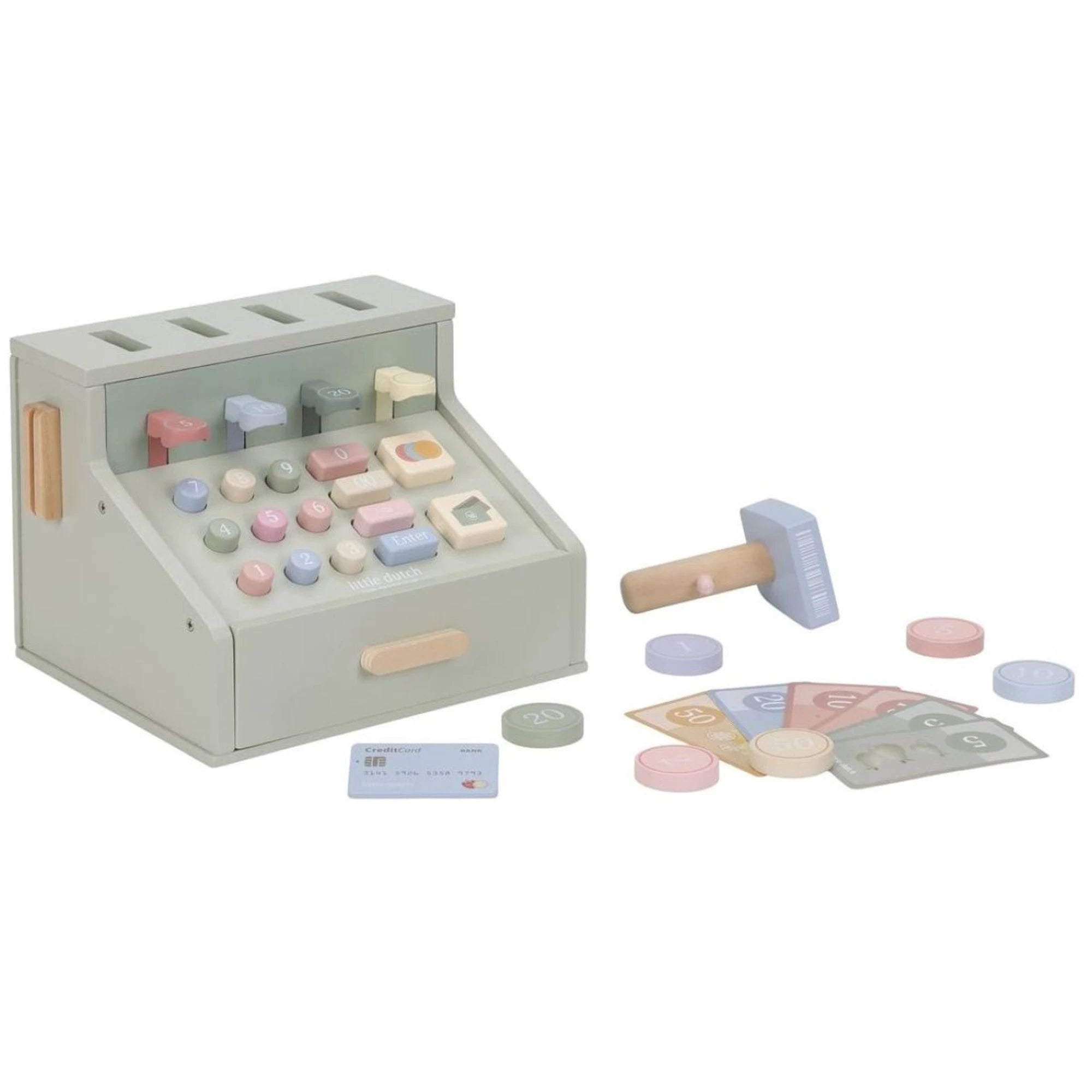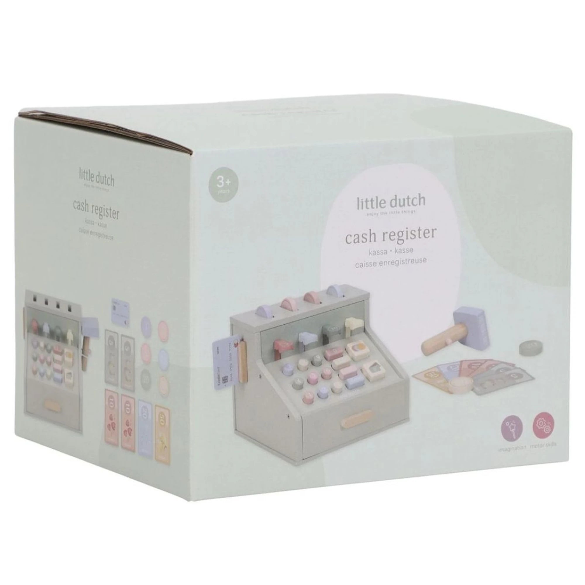 Zažijte nekonečná dobrodružství s dřevěnou pokladnou Little Dutch – ideální pro děti od 3 let. Má skener, čtečku karet, tlačítka i šuplík na mince a bankovky, takže obchod se tu tváří skoro „až podezřele“ jako doopravdy. Je z pevného FSC certifikovaného dřeva a má rozměry 23 x 16,5 x 14,5 cm. Při hraní na obchod si děti nenápadně procvičí počty a oťukají si finanční gramotnost – a představivost u toho pípá spokojeně jak skener na rohlíky. Tenhle doplněk je parádní pro rozvoj dovedností i fantazie.