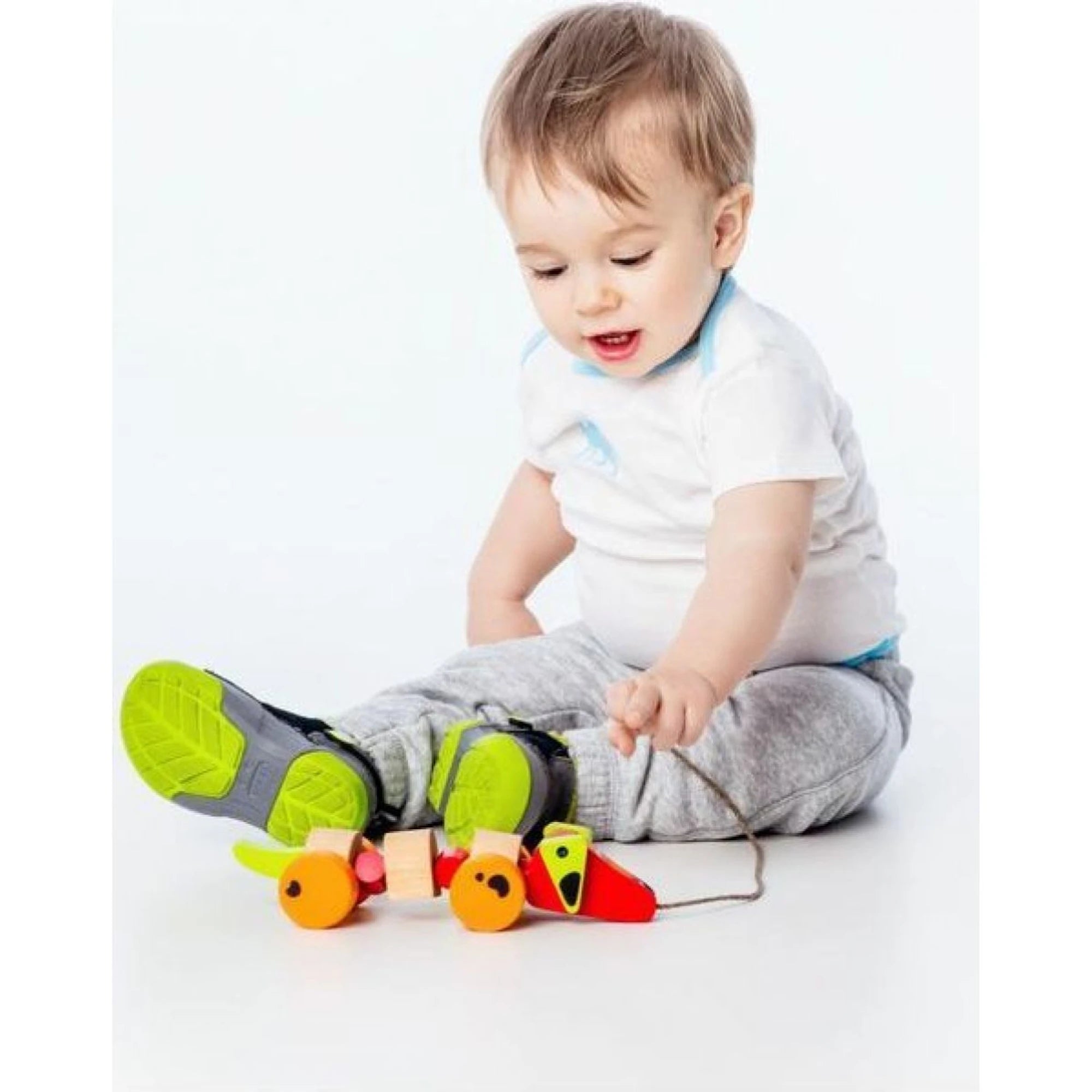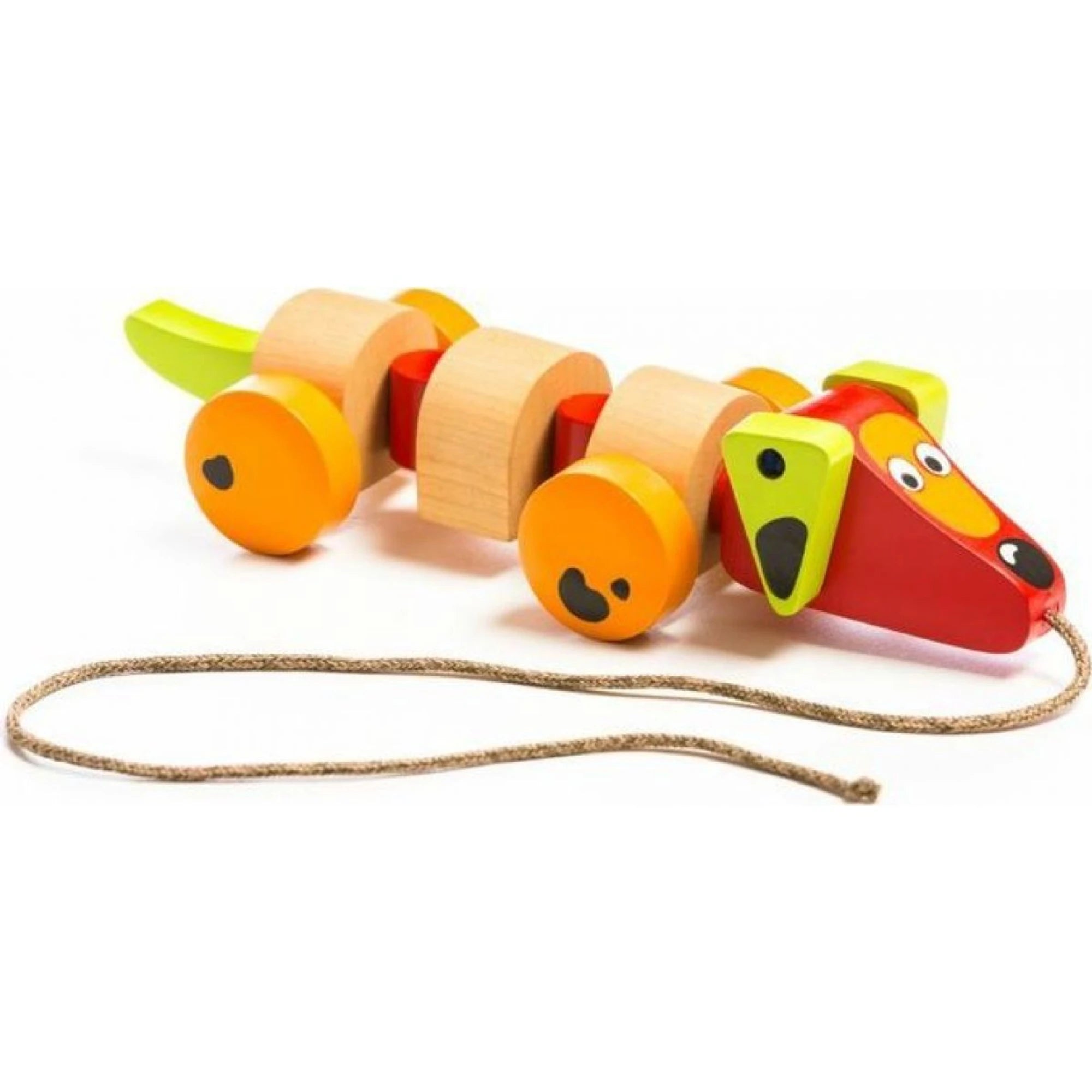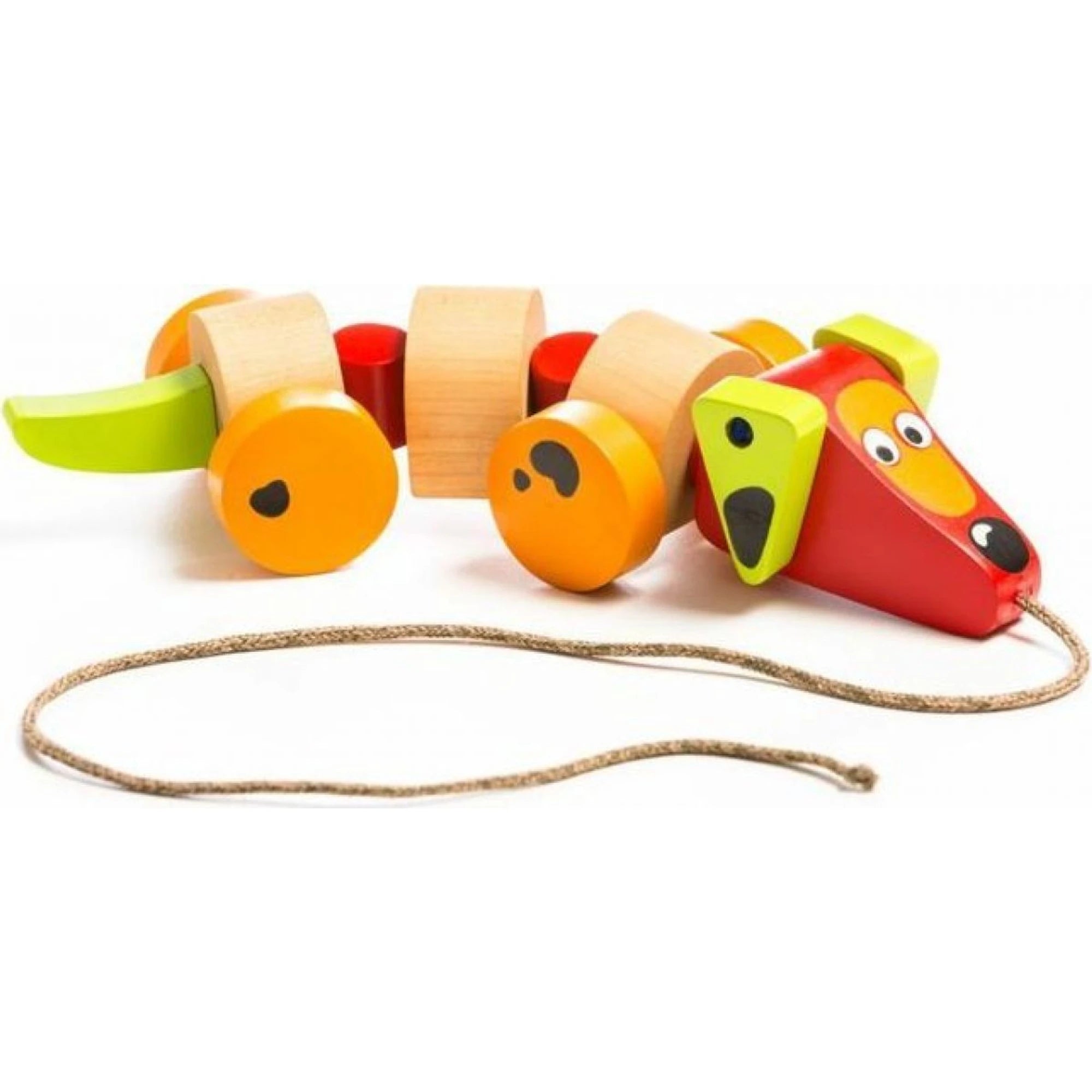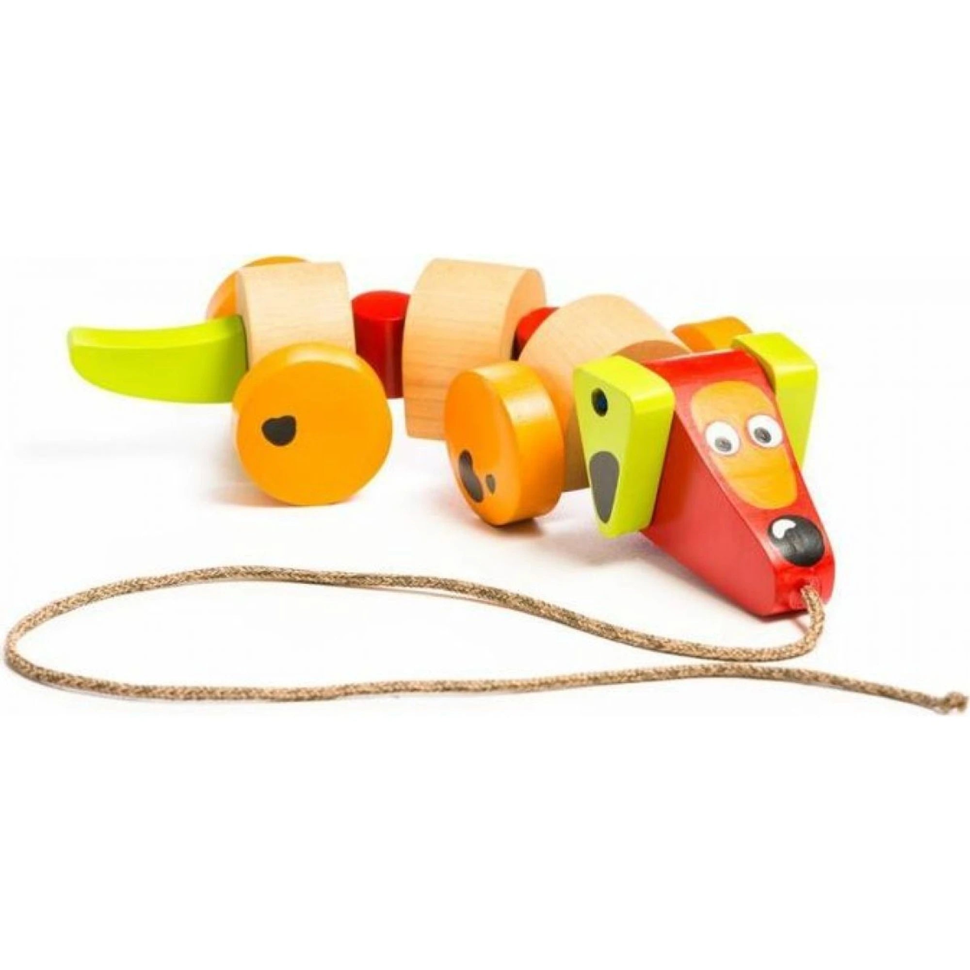 Tahací pes má členitou konstrukci a je připevněný na šňůrce. Holky i kluci si ho mohou vodit za sebou – skvělá motivace k chůzi.