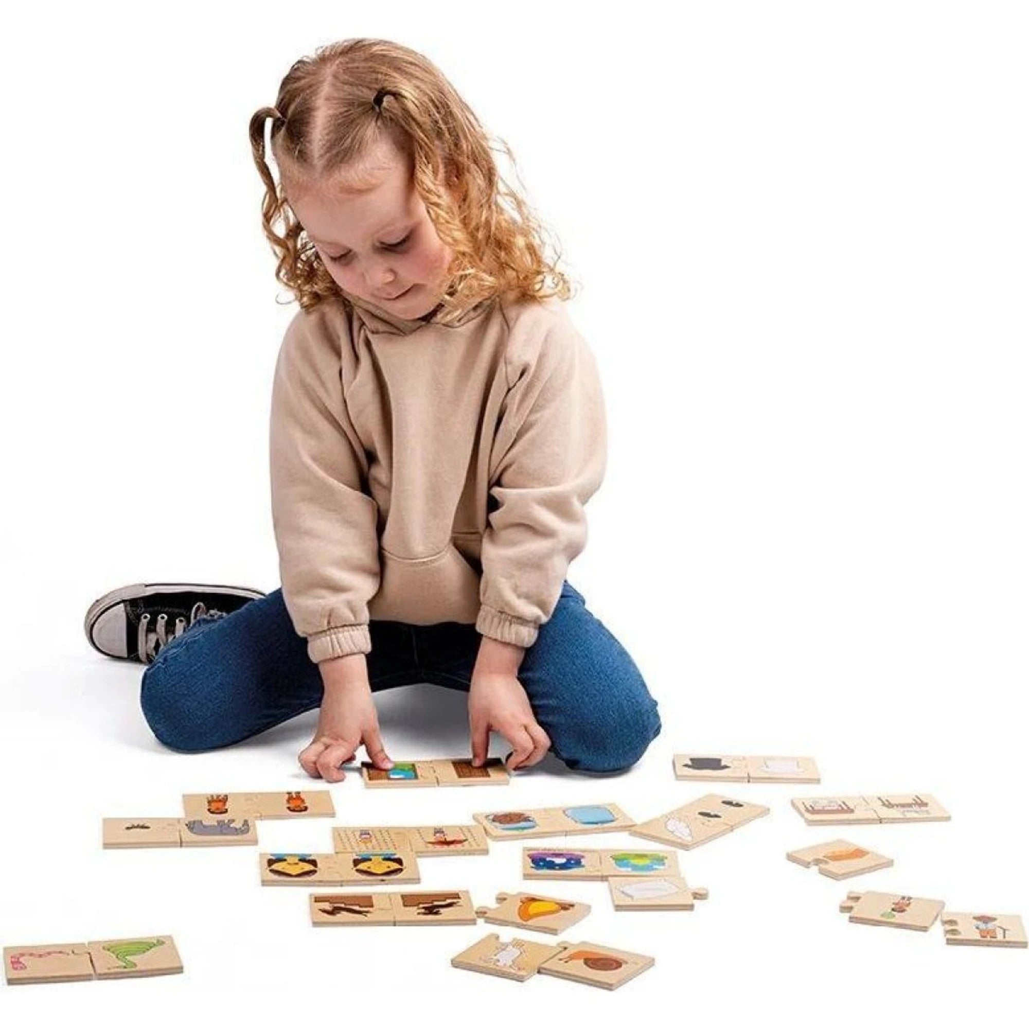 Holčičky a kluci mají za úkol složit vždy dva dílky tak, aby k sobě tématicky sedly. Jednoduché pravidlo, ale radostné „cvak!“ vítězství je pokaždé stejné.