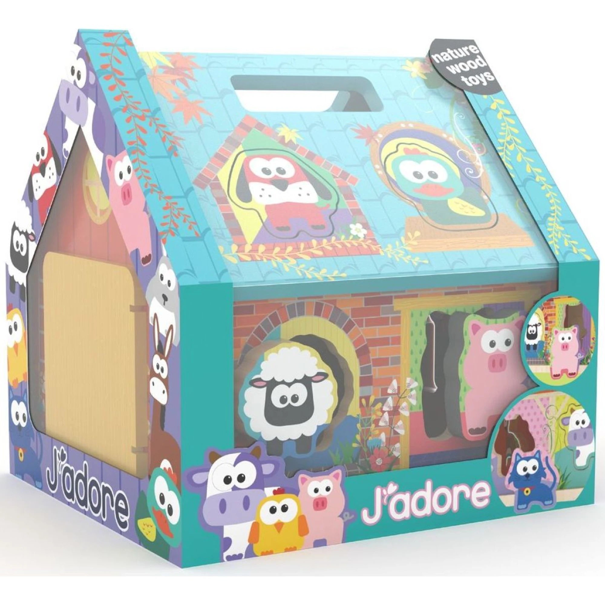 Malé ručičky si zamilují J'ADORE dřevěný farmářský domeček – vkládačku, která učí tvary, barvy i zvířátka tak nenápadně, že si toho děti všimnou až ve chvíli, kdy jim to začne skvěle jít. Přírodní dřevo a netoxické barvy drží hru v bezpečných kolejích, takže je tahle paráda vhodná už od jednoho roku. A ten moment, kdy správný dílek konečně „klapne“ do otvoru? Jemná motorika i koordinace oko-ruka rostou jako na farmě po jarním dešti. Veselé farmářské motivy navíc přidají hře šťávu a dětský pokojíček hned vypadá o kus živěji.