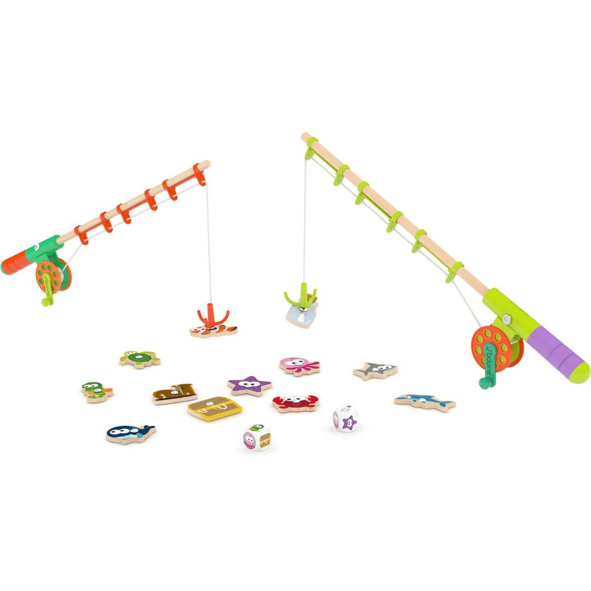 J'ADORE Rybaření dřevěné je přesně ten typ hry, u které je zábava chytřejší, než vypadá. Malí rybáři loví barevné rybičky magnetickým prutem – a všechny jsou z kvalitního a bezpečného dřeva, takže žádná rybí panika. Nenápadně se tu trénuje jemná motorika, koordinace ruky s okem i trpělivost – ideální parťák na hraní doma, ve školce i na cestách. Veselý design a přírodní materiál z toho navíc dělají dárek, co zaboduje u každého malého lovce.