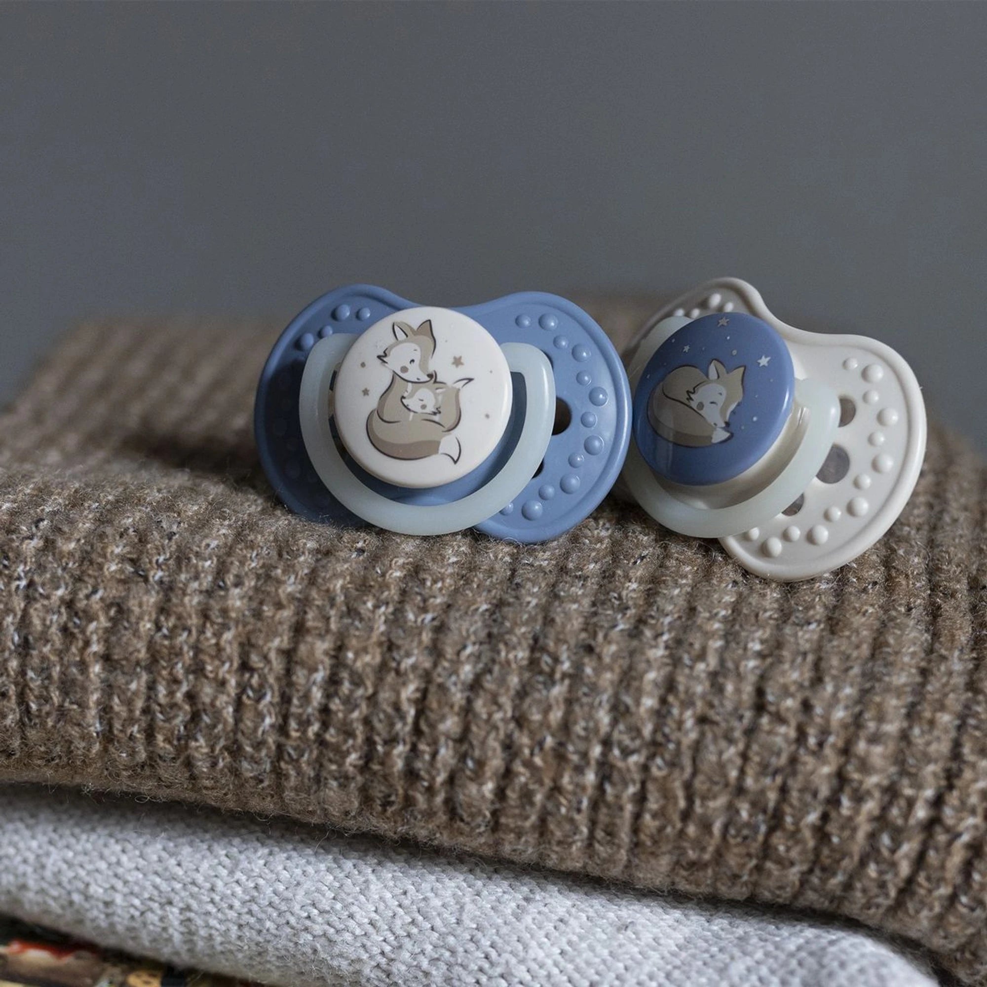 Dudlíky byly vytvořeny ve spolupráci s neurologopedy. Nenarušují sací reflex ani přirozený vývoj řeči a skusu, pokud jsou dodržována ortodontická a logopedická doporučení. V kolekci jsou v provedení holka a kluk, kombinace tmavě růžové a světle růžové, také modré a béžové.