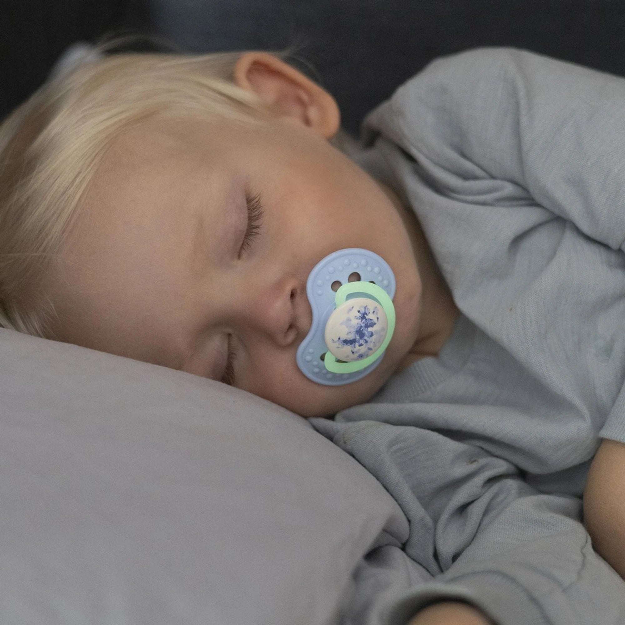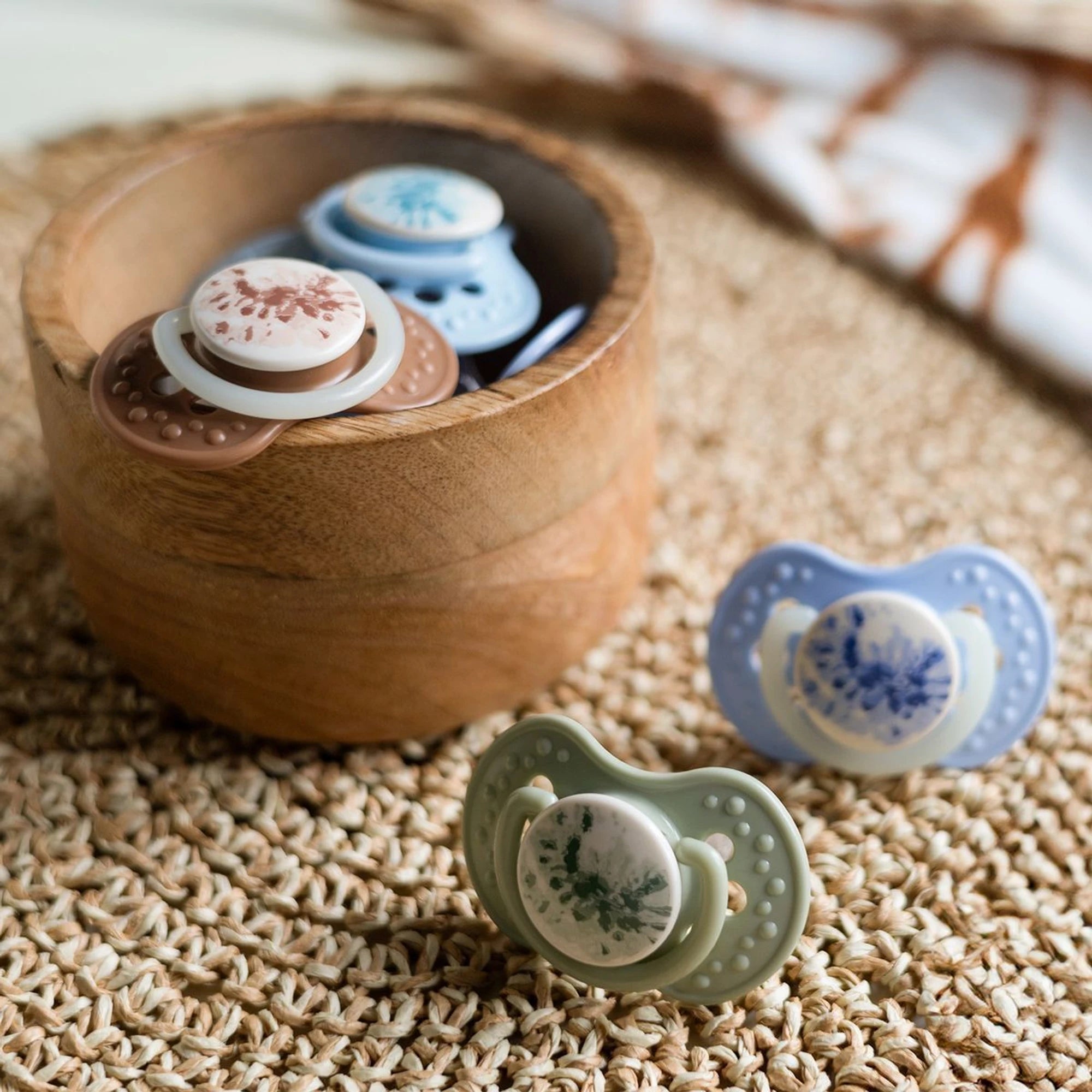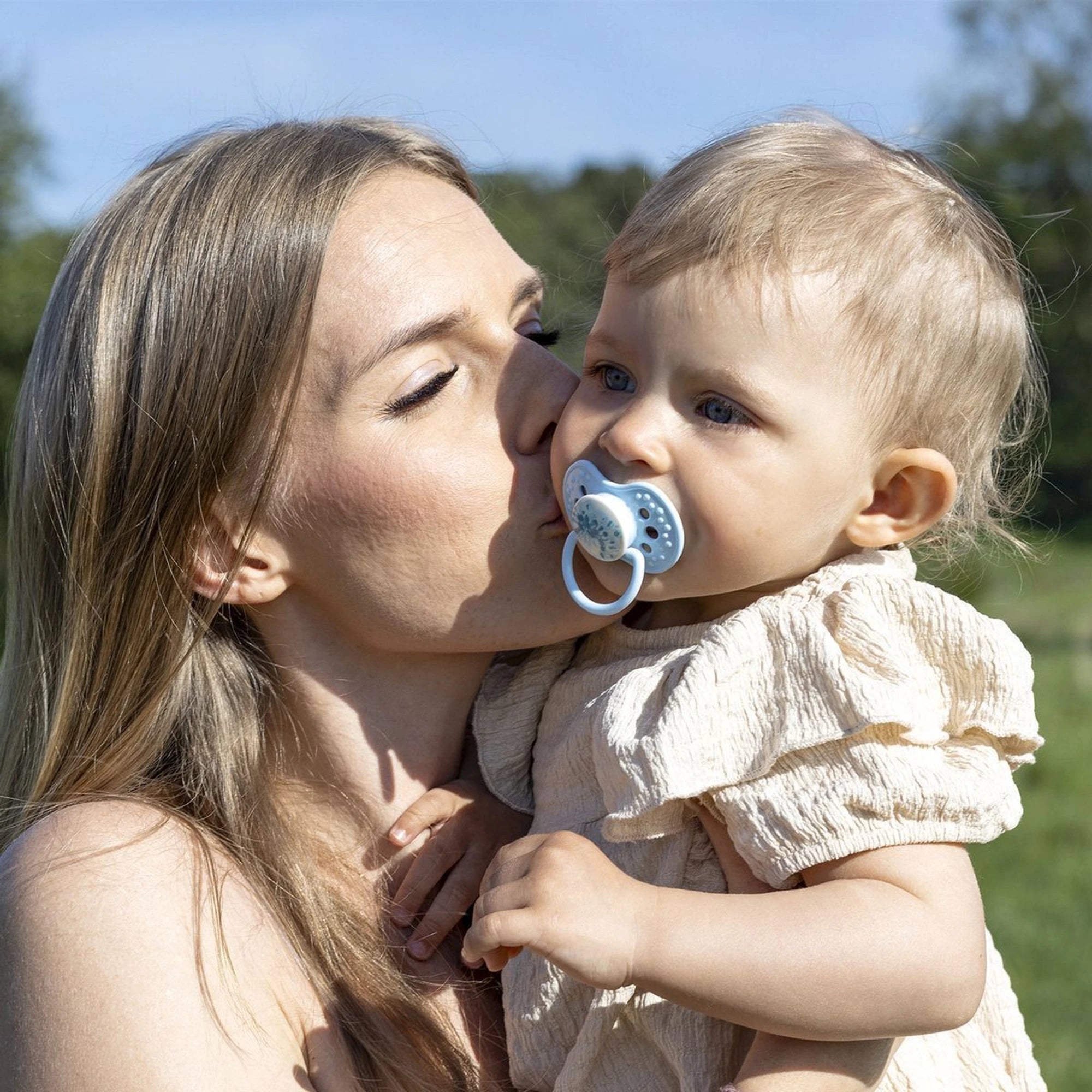 Vznikly ve spolupráci s neurologopedy. Inspirace? Matčina bradavka; nestejnorodé vrstvy silikonu a symetrický tvar si rozumí s každým cucnutím. Štítky v pastelových barvách sedí holčičkám i chlapečkům. Dudlík nenarušuje sací reflex ani přirozený vývoj řeči a skusu, pokud se držíte ortodontických a logopedických doporučení.
