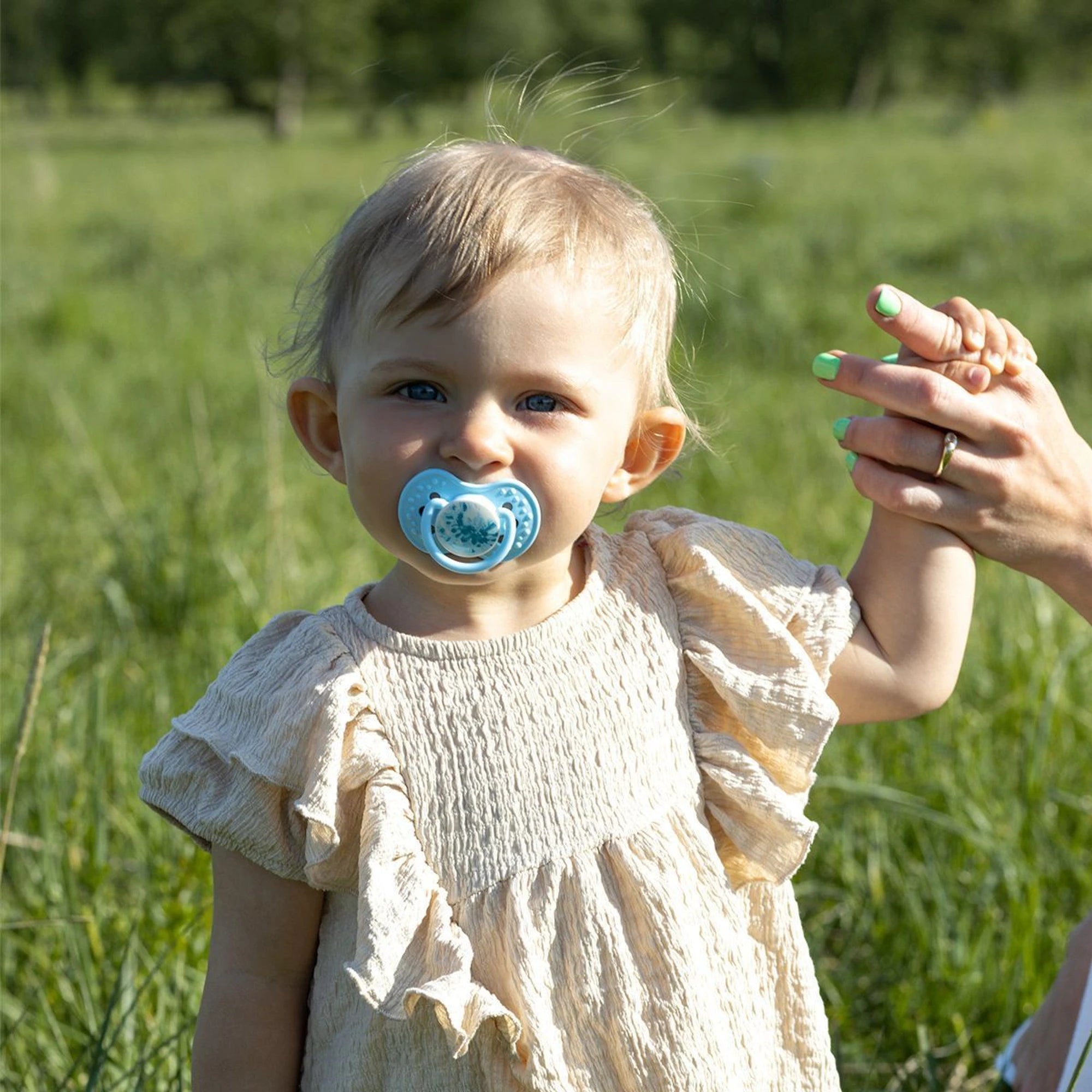 Tyto dudlíky byly vytvořeny ve spolupráci s neurologopedy. Inspirovány matčinou bradavkou, s nestejnorodými vrstvami silikonu a symetrickým tvarem – prostě jako doma. Štítky jsou v pastelových barvách, jak pro holčičky, tak pro chlapečky. Dudlík nenarušuje sací reflex a přirozený vývoj řeči a skusu, za předpokladu, že jsou dodržována ortodontická a logopedická doporučení. A já? Tuhle chytrou dvojku beru všemi deseti.