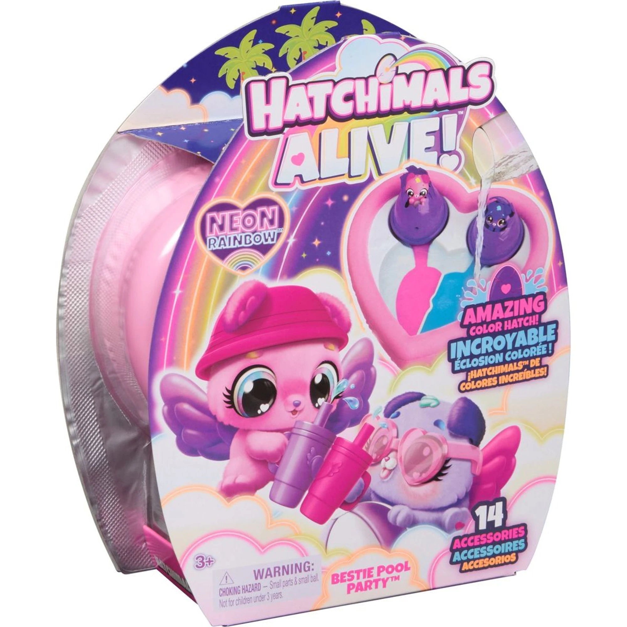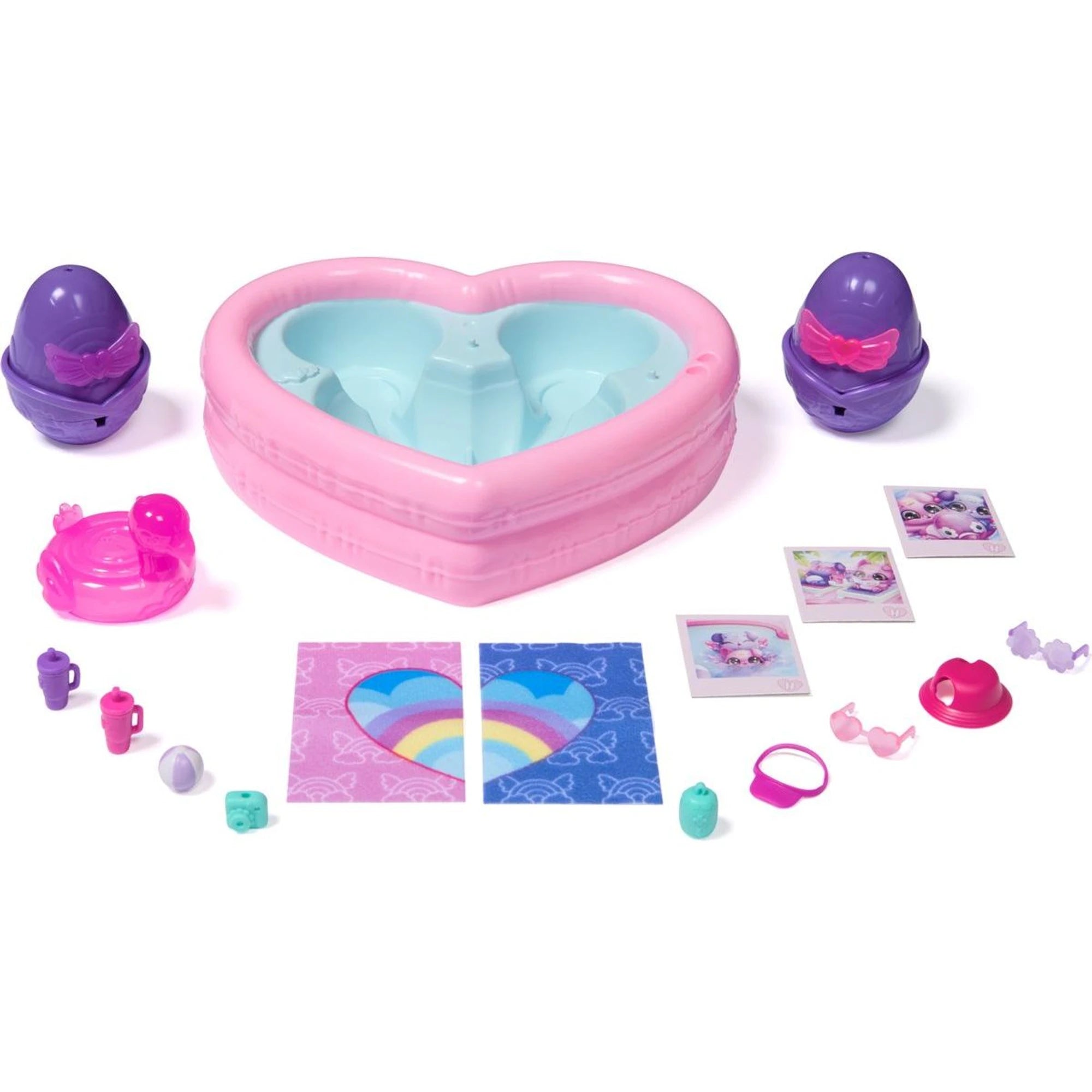 Malé pečovatelky si užijí bazénovou párty, kde můžou nechat líhnout nové kamarády ve vodě z neónových vajíček. Stačí je vložit do bazénku, odstranit křídla a pomalu naplnit srdíčka vodou; postavičky se začnou líhnout, jakmile obě strany srdce změní barvu. Po přidání většího množství vody se barvy smíchají do fialové.