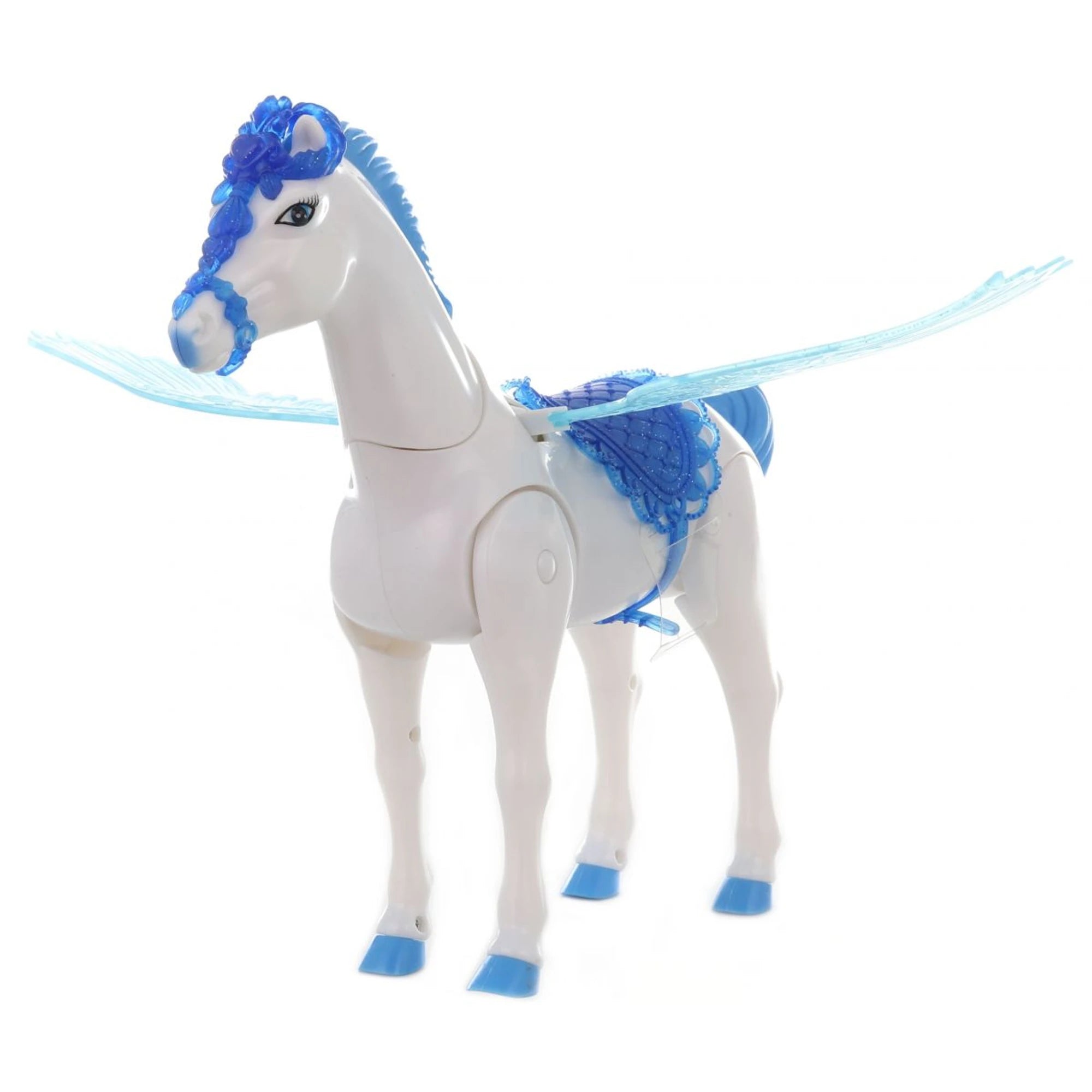 Bílý kůň s rozepjatými světle modrými křídly právě čeká, až naskočí panenka. Já Fantarius už slyším to klapotání! Je osedlán modrým sedlem, hříva i ocásek jsou sčesané do gala – a ano, taky modré.