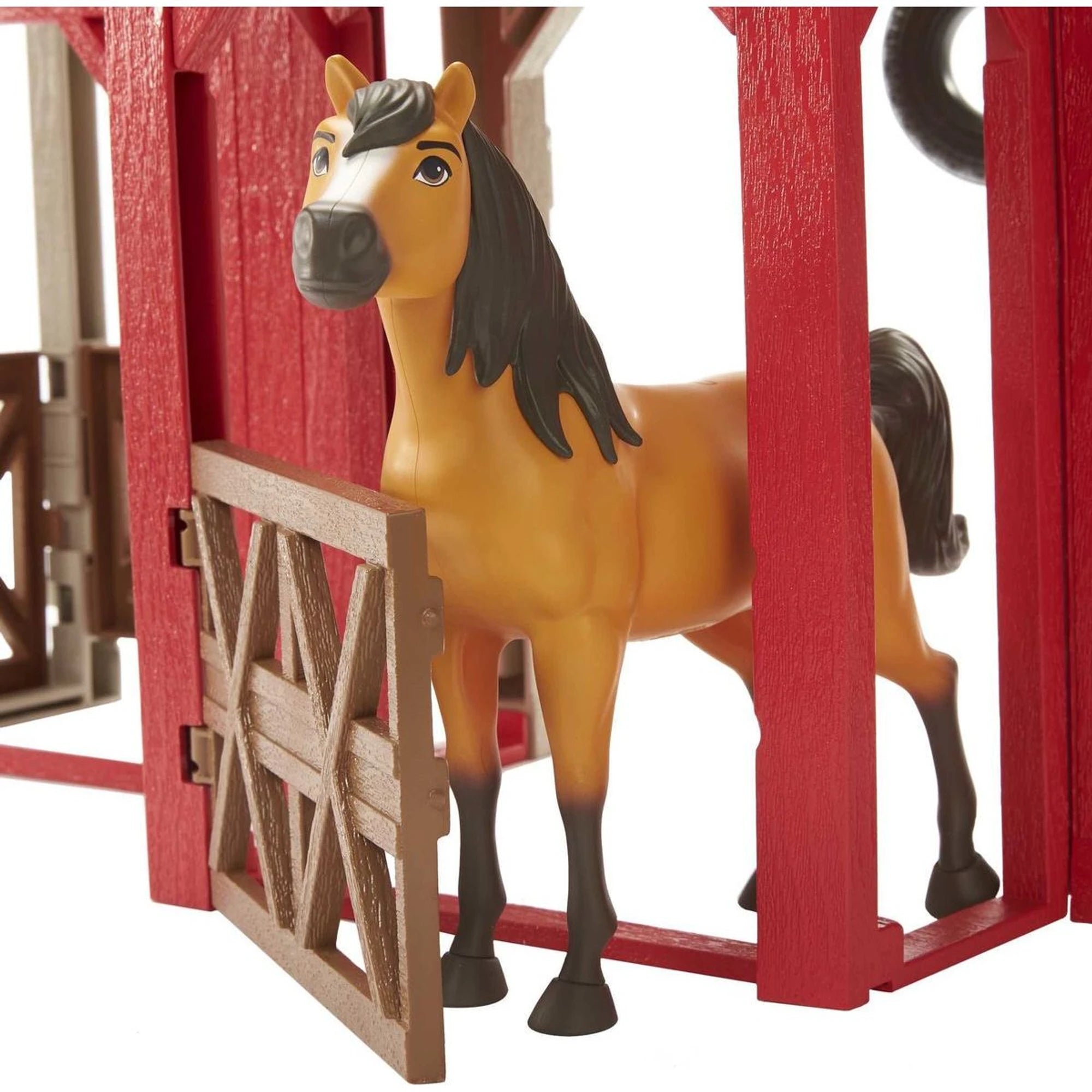 Koník Spirit přicválal i s parádní stájí, takže si malé jezdkyně můžou přehrát dobrodružství přesně podle animáku Spirit od DreamWorks. Hříva se leskne jako z reklamy na šampon a ocásek je vyčesaný do posledního chloupku.
