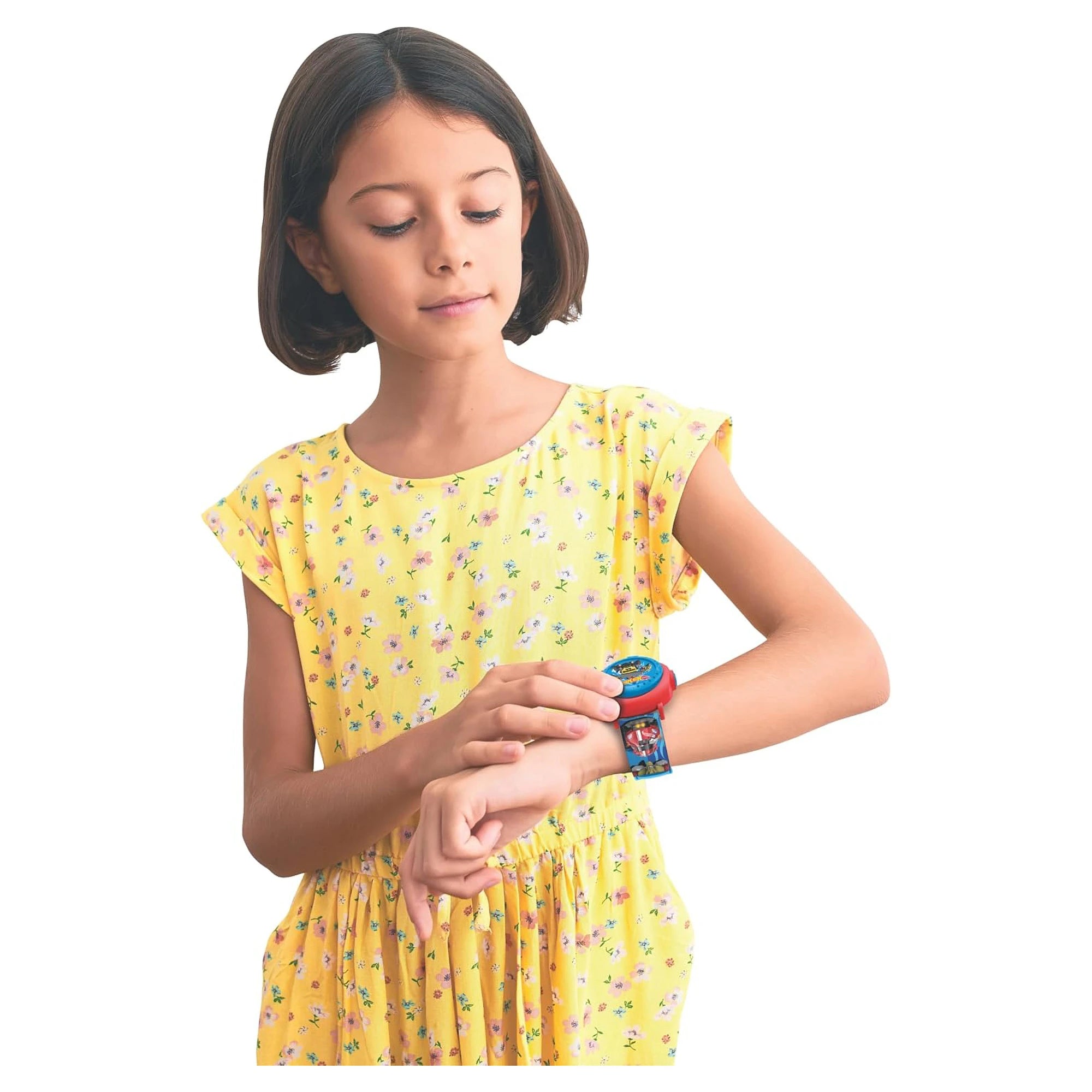 Představujeme digitální promítací hodinky – malý zázrak na zápěstí pro všechny, kteří se rádi baví. Na digitální obrazovce jednoduše nastavíte čas i datum, žádná věda. Hodinky, ideální i pro menší zápěstí díky nastavitelnému řemínku, jsou nejen praktické, ale hlavně nabité fičurami. Díky funkci promítání zabudované přímo v hodinkách můžou malí dobrodruzi stylově předvádět své oblíbené postavičky kdekoli zrovna jsou. Jedním stiskem bočního tlačítka spustíte promítání a pootočením obvodového kroužku kolem hodinek vyberete z 20 různých tematických obrázků. Obrázek doostříte kolečkem na boční straně hodinek. A teď pozor – děti můžou kamarádům posílat kódované zprávy promítané na stěny a vyzkoušet si tajnou komunikaci v symbolech jako malí agenti!