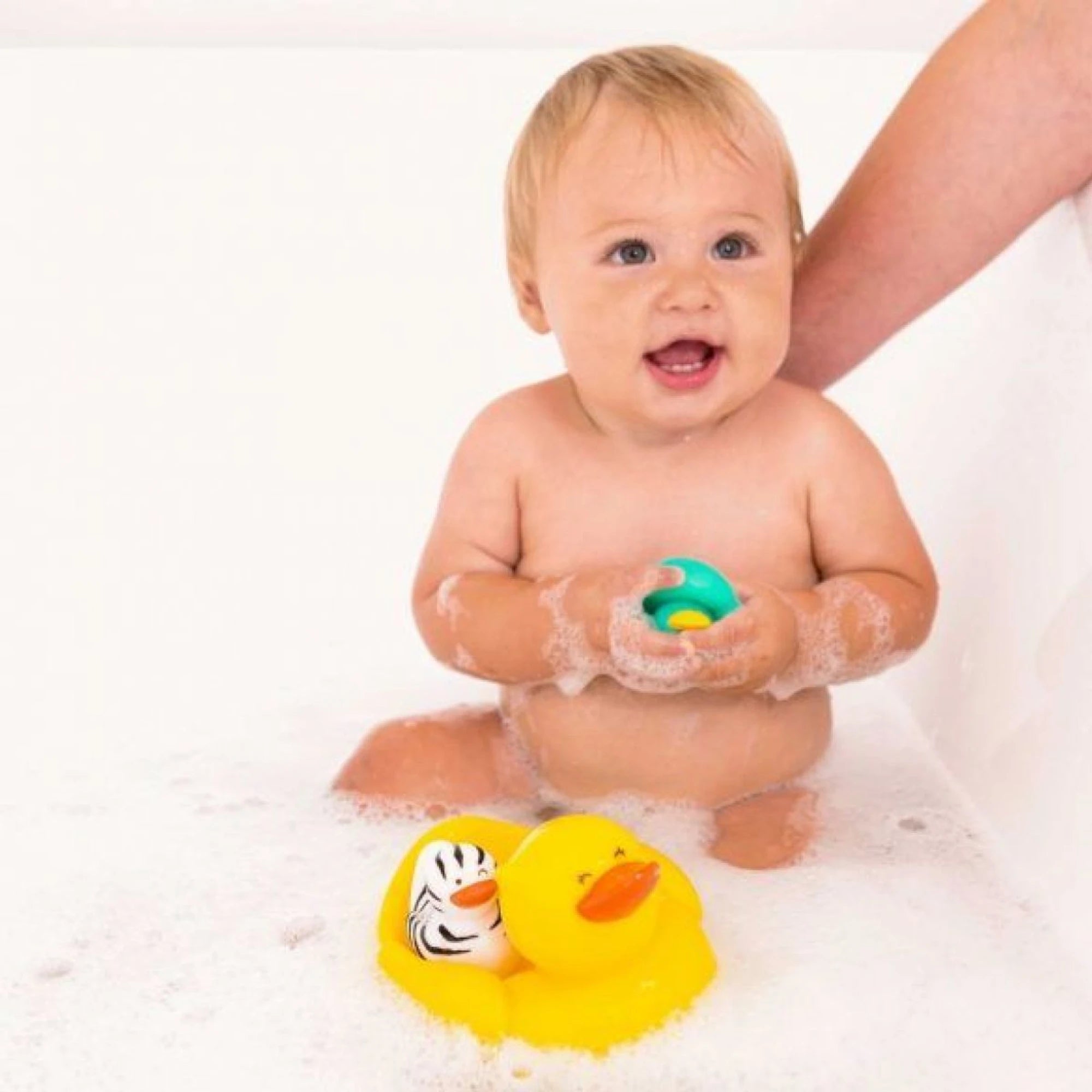 Žlutá kachna se dvěma barevnými mláďátky promění koupání ve vaně, bazénku i na pláži v veselý šplouchfest. Přednosti: vyrobeno z... Číst více