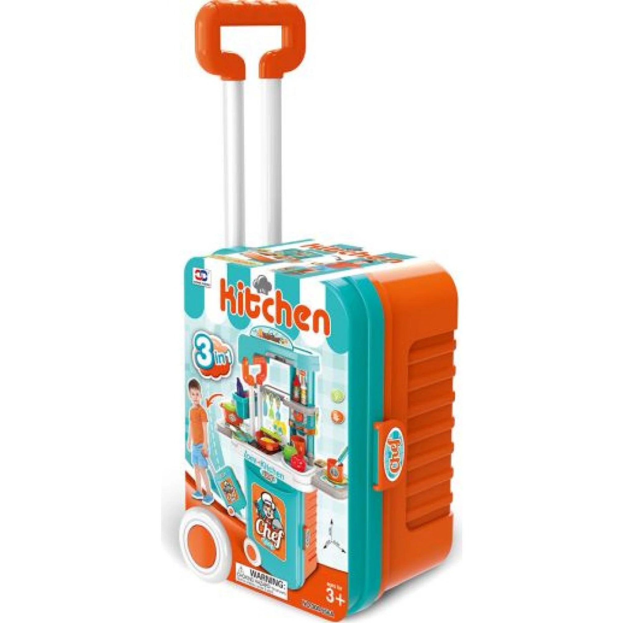 Vybalením obsahu z kufru ji složíte do stolní verze kuchyňského stolku, včetně rozšířené pracovní plochy do stran a závěsů nad pracovní plochou. Po ukončení hry jde všechno zase pohotově zpět – šup do kufru a jede se dál.