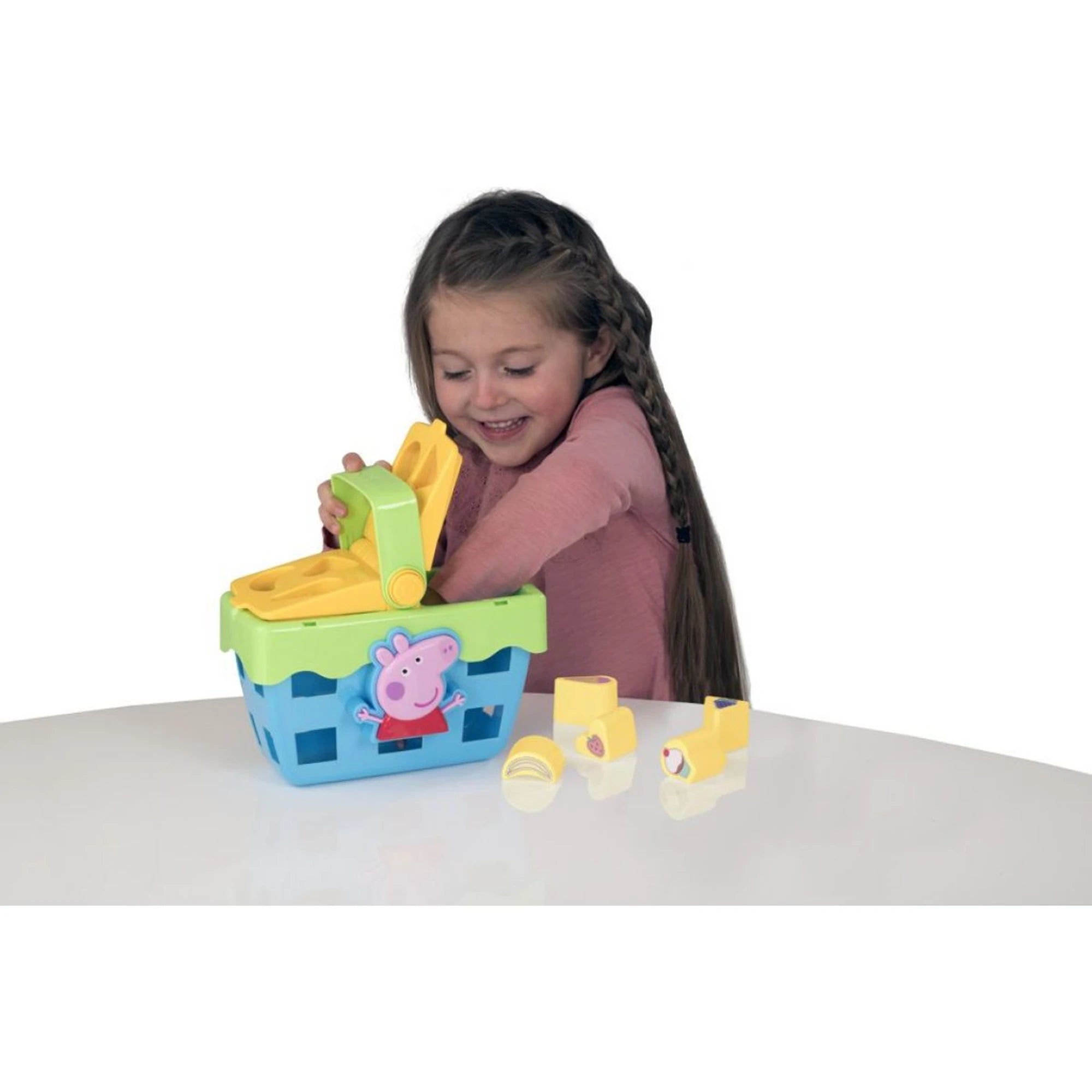 Vkládačka v podobě nákupního košíku s motivem prasátka Peppy – malý supermarket tvarů a radosti.