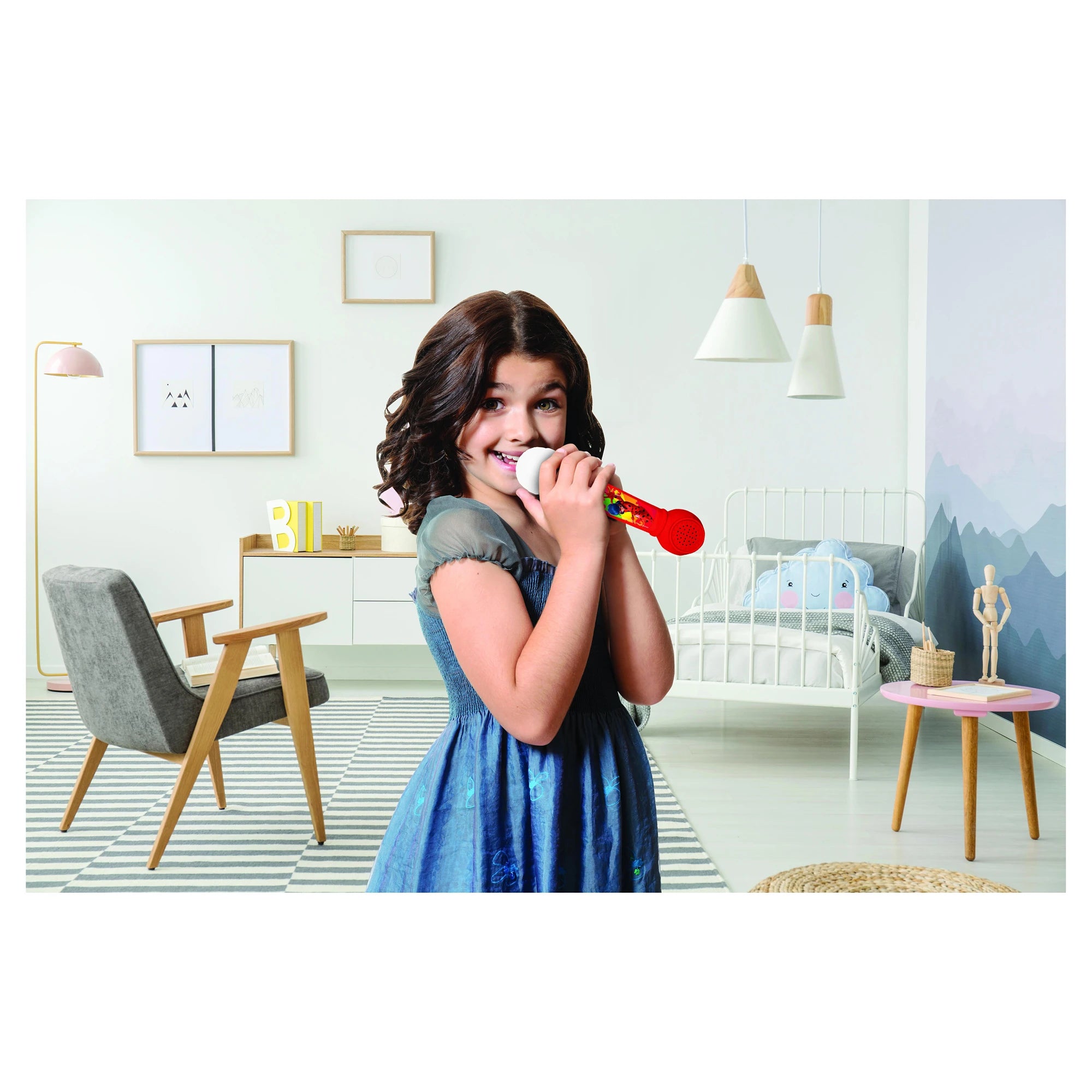 Hudební show přímo doma? Dětský mikrofon s vestavěným reproduktorem a vícebarevnými světelnými efekty zaujme všechny malé nadšence, kteří si rádi hrají na zpěváky. Mikrofon přehrává pět demo melodií a zvuky potlesku – ideální povzbuzení k dalším hudebním výkonům. Vhodný pro děti od 3 let a ovládání? Jednodušší než zazpívat „lalala“. Nechte malé hvězdy prozkoumat svět hudby a užít si zpívání naplno.