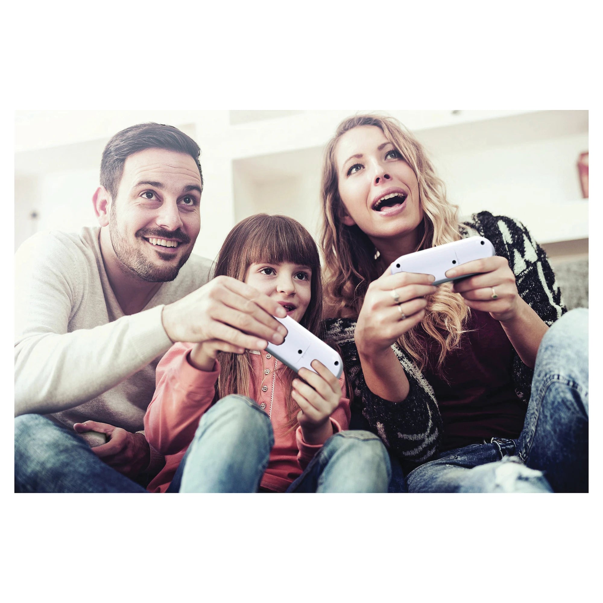 Tahle herní TV konzole má v sobě 250 her, včetně 30 interaktivních sportovních titulů, 220 arkádových a mini her – dobrodružné, vzdělávací i karetní kousky pro každou náladu. Některé tituly tě vrátí do retro klasik z 90. let. Stačí připojit k TV a skočit po hlavě do herního světa. Konzole zvládá 32bitovou grafiku a servíruje akci v reálném čase. K dispozici jsou i 2 bezdrátové ovladače pro hry ve více hráčích.