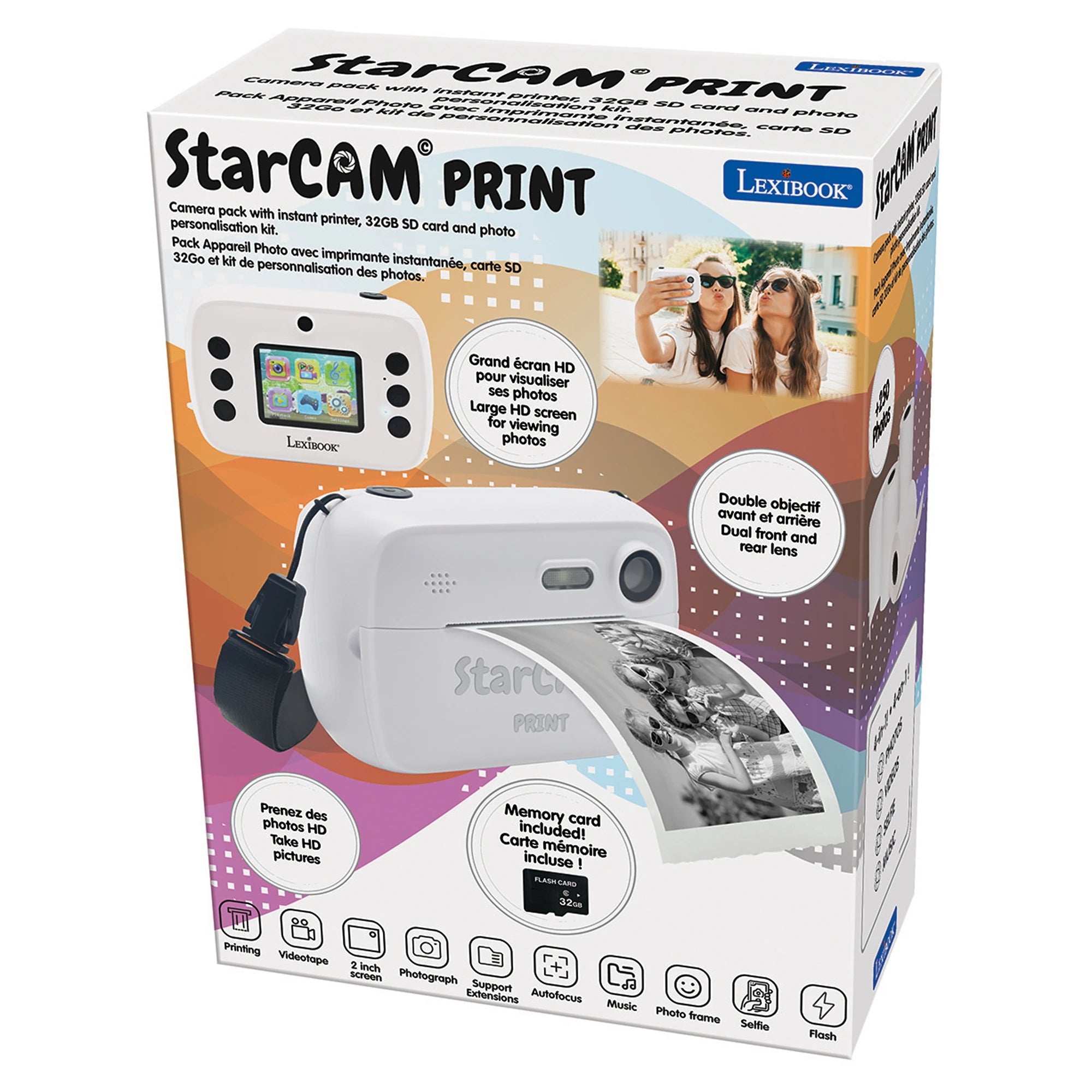 Kromě fotografií lze navíc zachytit i videa v HD kvalitě a pohrát si s jejich rozlišením i rychlostí. S 32 GB SD kartou může instantní fotoaparát uložit až 30 000 fotografií. Nechybí velká HD obrazovka pro prohlížení a duální přední a zadní objektiv, takže si děti mohou pořídit i selfie. Fotoaparát disponuje bleskem pro focení ve tmě a časovačem. Všechen nasbíraný materiál snadno nahrajete do PC (za pomocí USB-C kabelu nebo vložením SD karty).