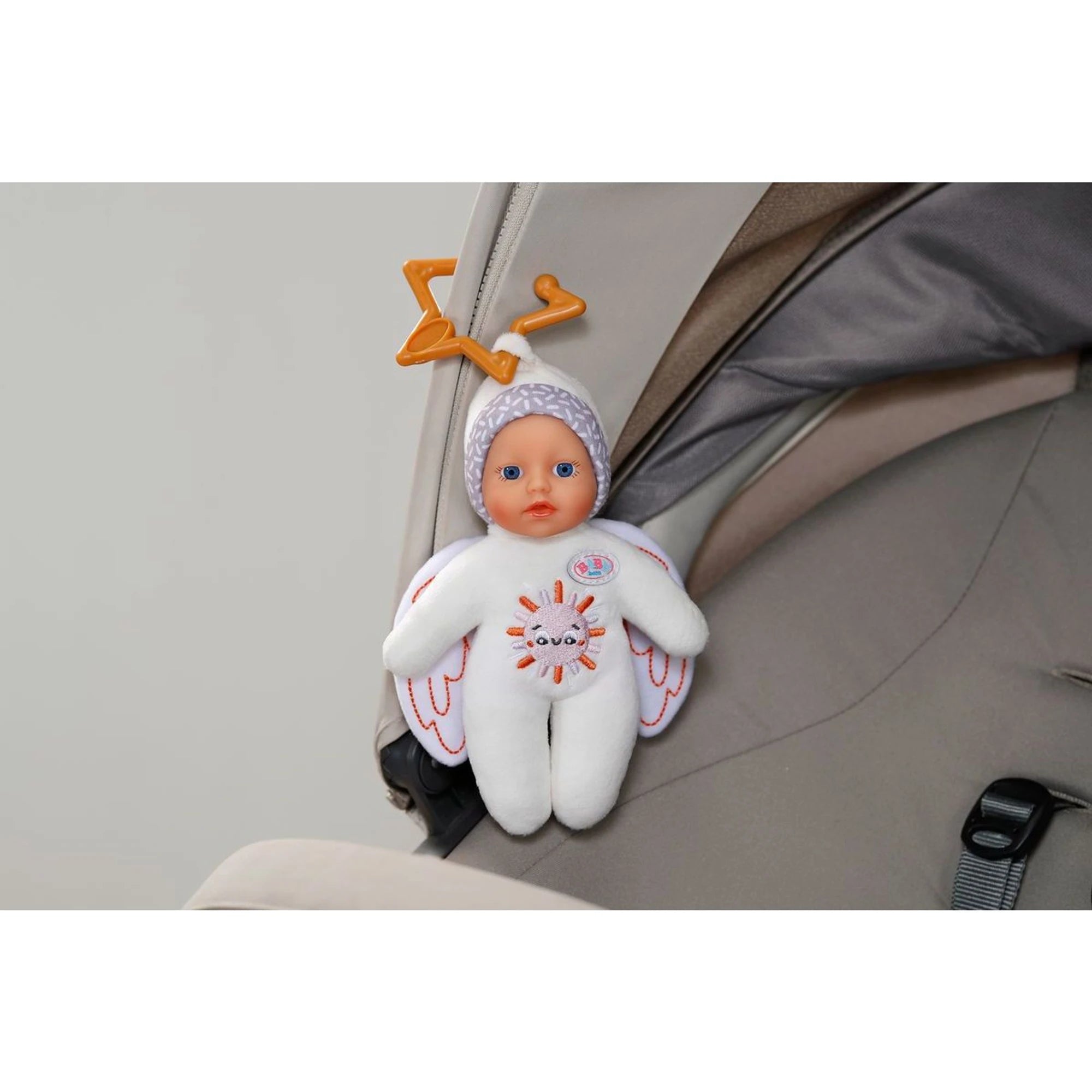 BABY born Andílek je měkký parťák pro ty úplně nejmenší už od narození. Látkové tělíčko je na mazlení jak stvořené a jemná vinylová hlavička zvládne i zvědavé dětské ťapkání. A aby to nebyla jen tichá něžnůstka, v křidélkách se schovává chrastítko – malé objevování může začít.