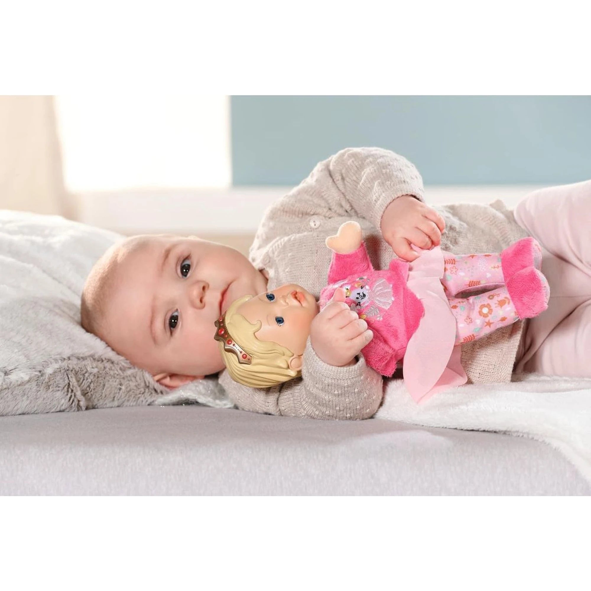 Panenka Baby Born, tentokrát dorazila jako princezna v růžových šatičkách s korunkou na hlavě. Má vinylovou hlavičku, tělíčko z látky a uvnitř měkkou výplň – přesně akorát na tulení. Přední část šatů zdobí výšivka zaječí princezny.