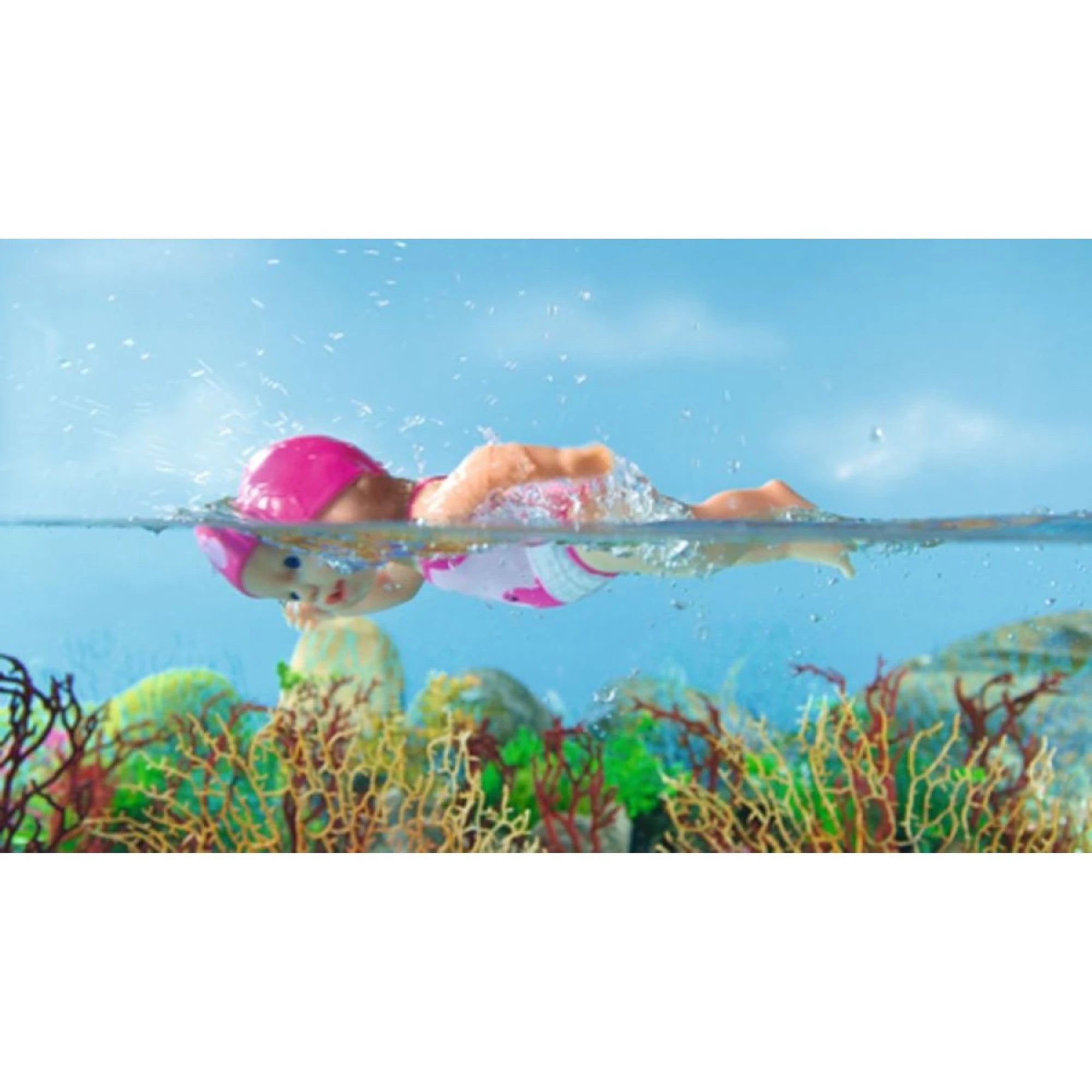 Při kraulu střídá ve vodě jednu ruku za druhou, při motýlku hýbe rukama stejně. K tomu všemu nepotřebuje baterie. Plavky i plavací čepici má natištěné přímo na těle jako reliéf, navíc zdobené obrázkem kačenky.