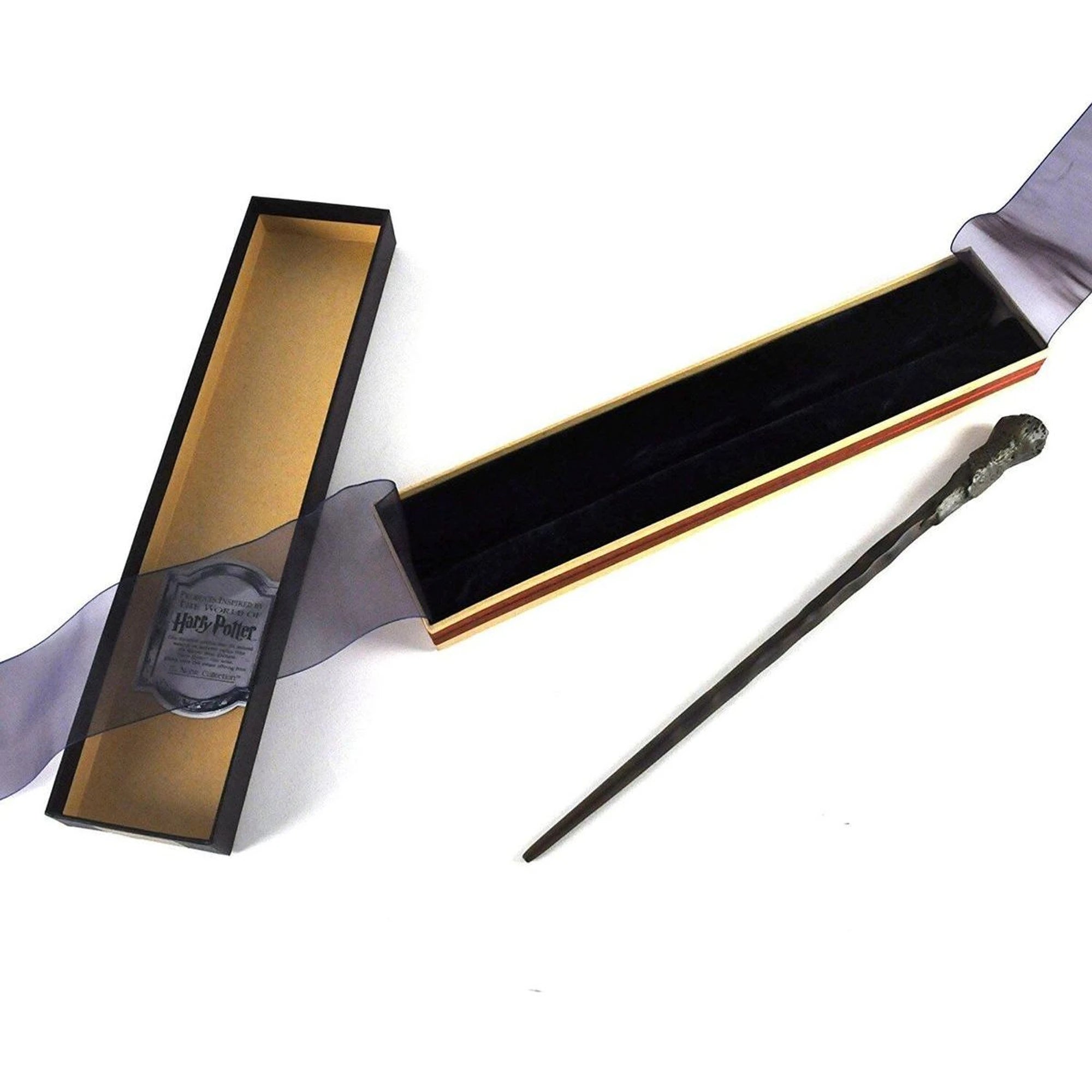 Patří do sady replik s autentickým zdobením. V téhle sérii najdete samostatně nabízené hůlky Harryho Pottera, Hermiony Grangerové, Rona Weasleye, Lorda Voldemorta i Albuse Brumbála. A pak hurá do světa kouzel – přehrávat si dobrodružné příběhy s kouzly, jako je Aguamenti, Expelliarmus, Incendio a další, je snadnější než lusknutí prstů (nebo mávnutí hůlkou).
