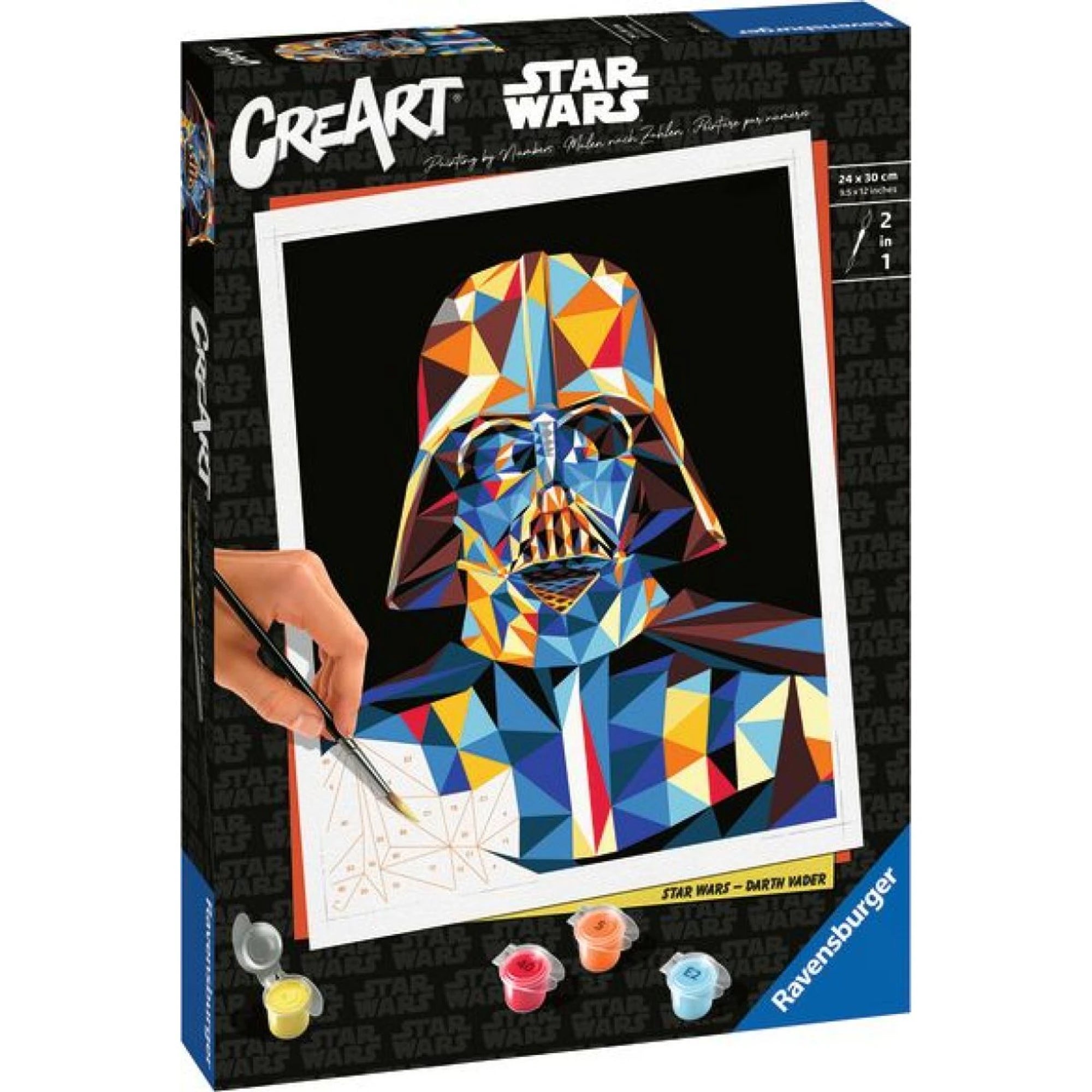 Darth Vader ze Star Wars se tu mění v galaktickou malířskou misi – děti malují na připravené plátno podle čísel. Jak budou postupně vybarvovat jednotlivé plošky a každé číslo spojí se správnou barvou, vyroste jim před očima barevný obraz.
