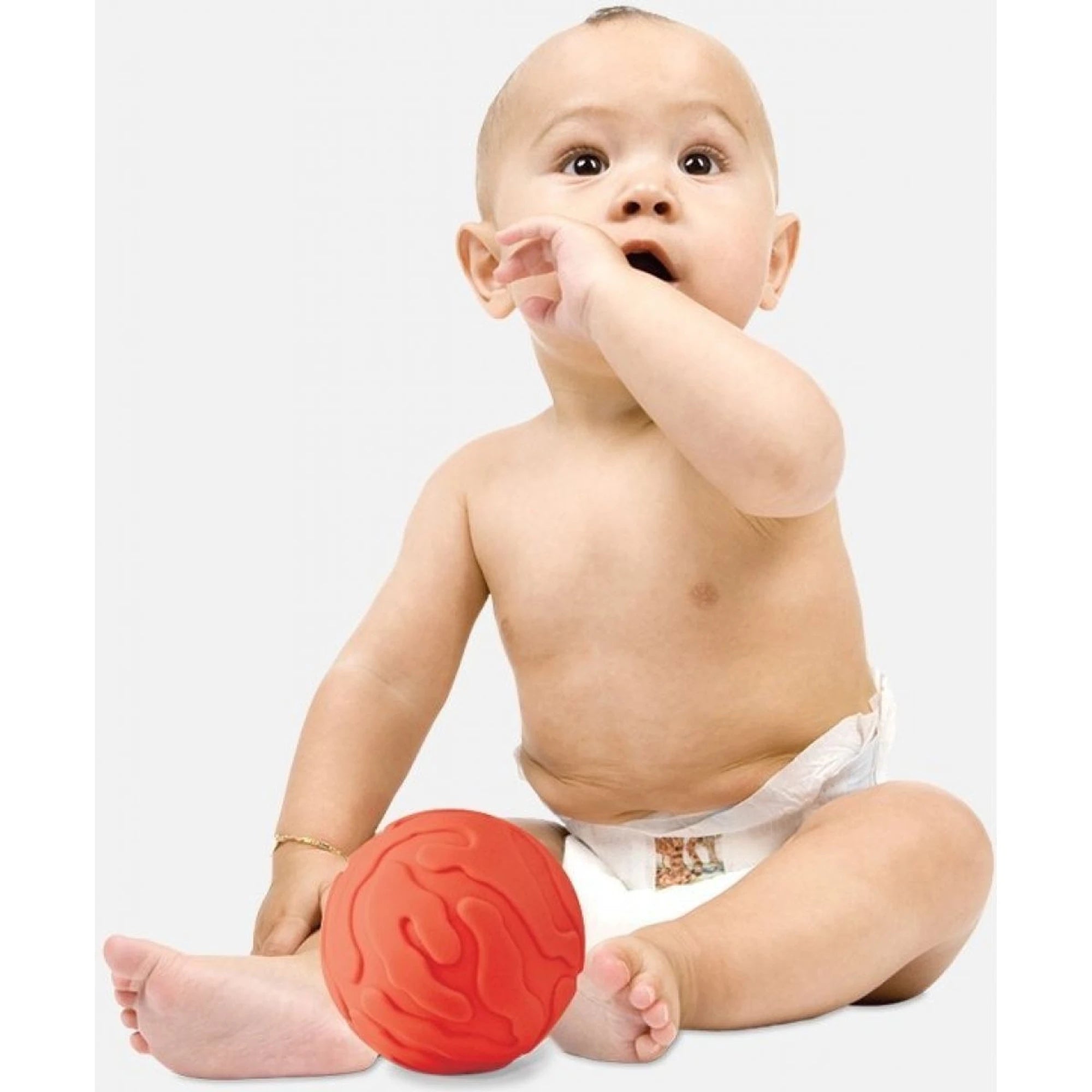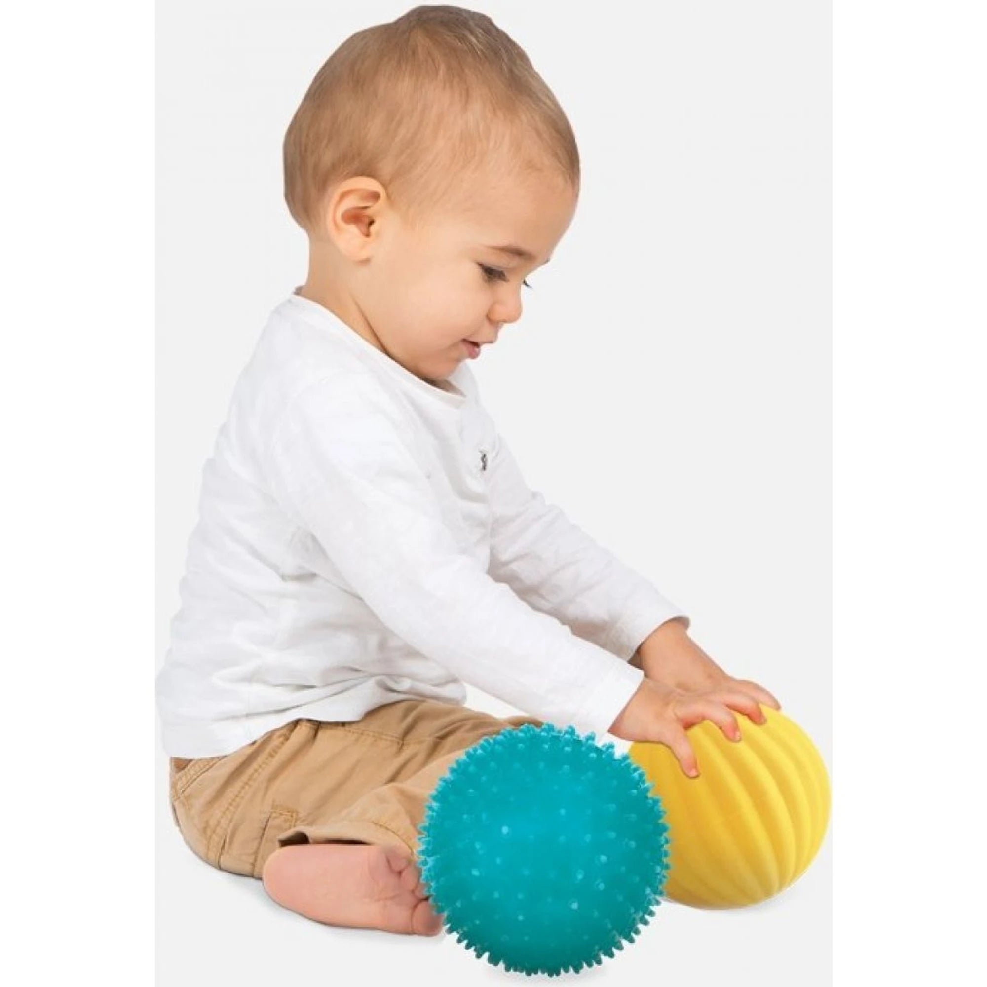 Malé jednobarevné měkké míčky vynikají výstupky a strukturovaným povrchem – prstíky mají co objevovat a nudit se nebudou.