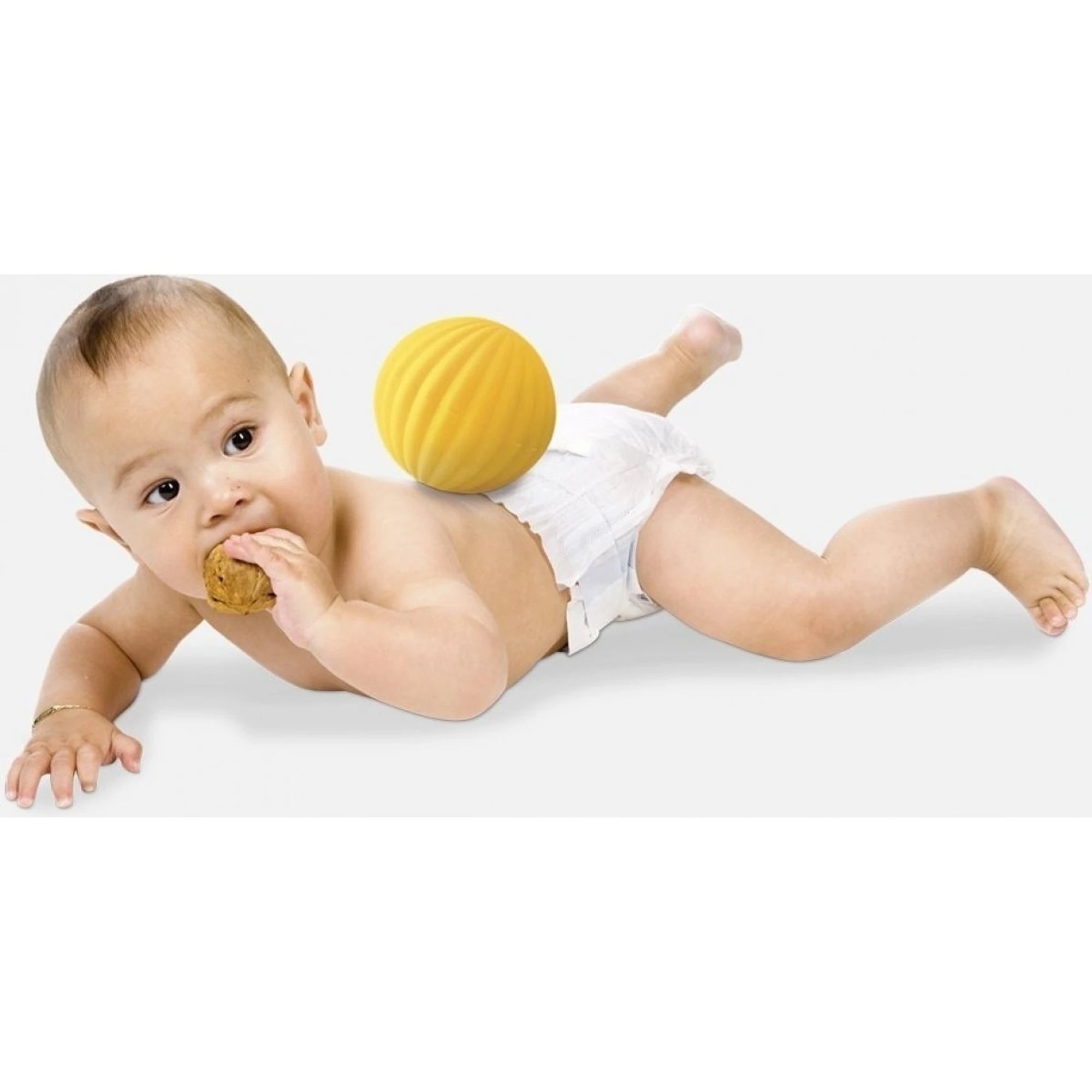 Míčky jsou skvělé na prospěšnou masáž: děti je mohou tisknout v ručičkách nebo po nich ťapat nožičkama. A když zrovna není „wellness“, přichází na řadu kutálení, házení i chytání.