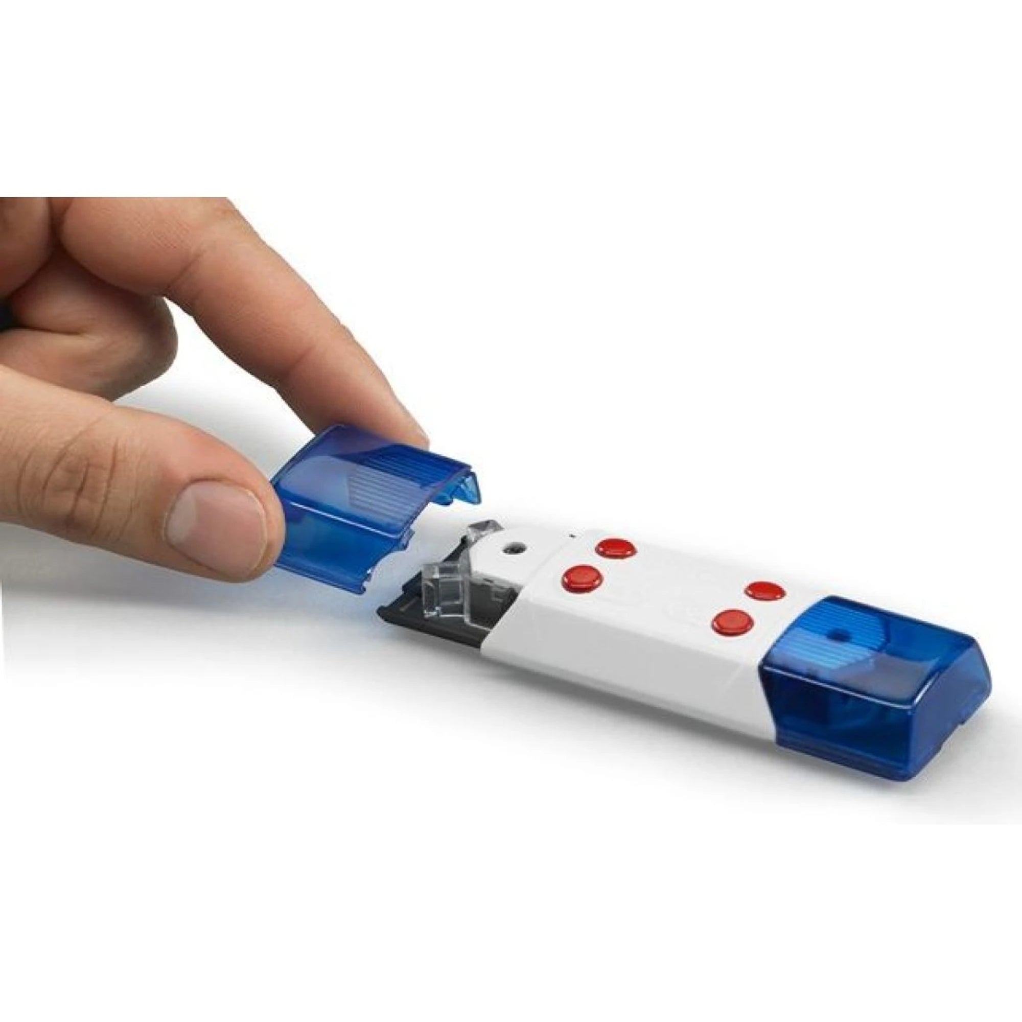 Univerzální maják se sirénou pro vozidla Bruder, co udělá z každé jízdy malý zásah. Stiskem tlačítek přepínáš efekty podle nálady (1. zvuk motoru, 2. policejní siréna, 3. siréna hasičů, 4. tón výstrahy). Když je rámusu dost, vše se samo utiší po 20 vteřinách, nebo hned po dalším ťuknutí.