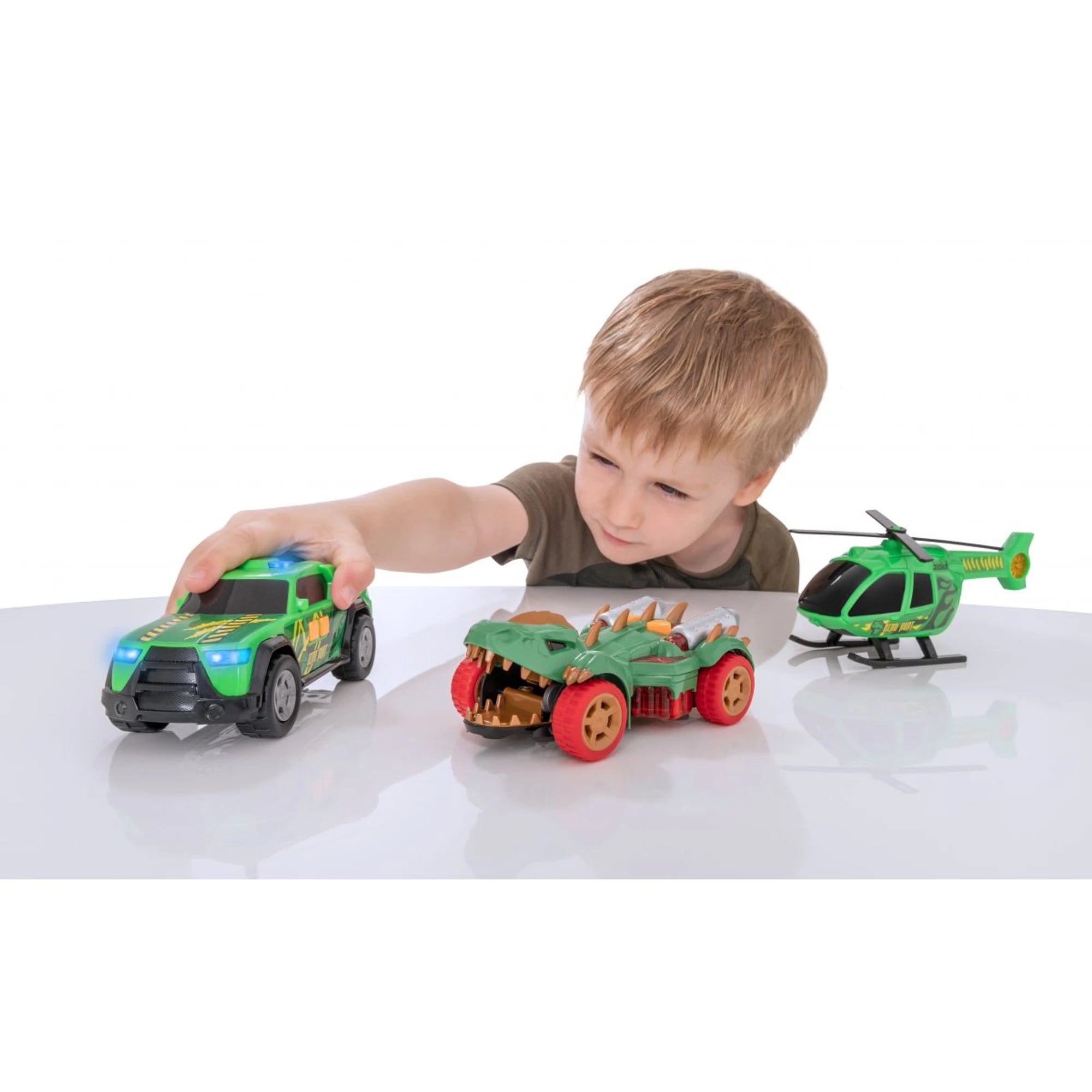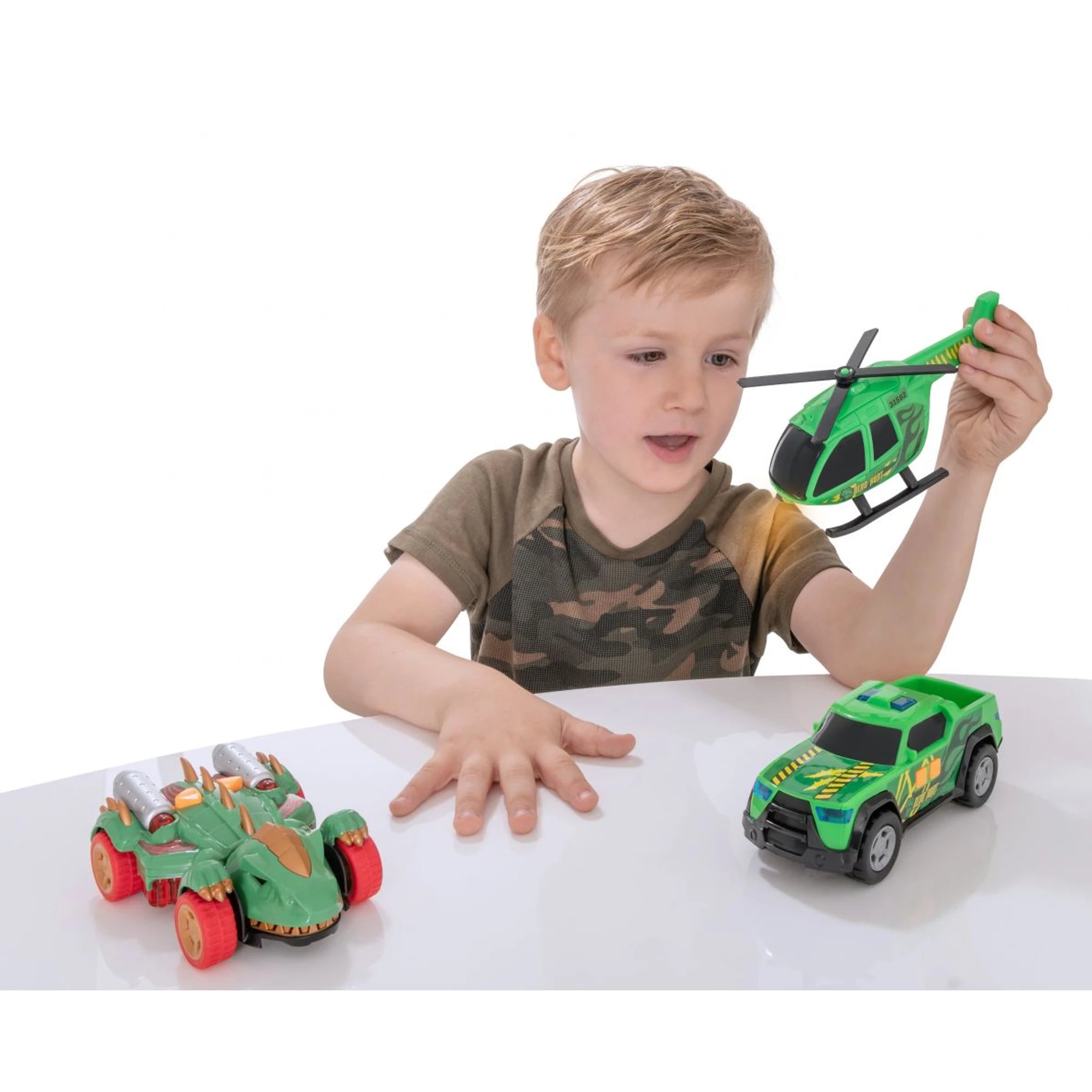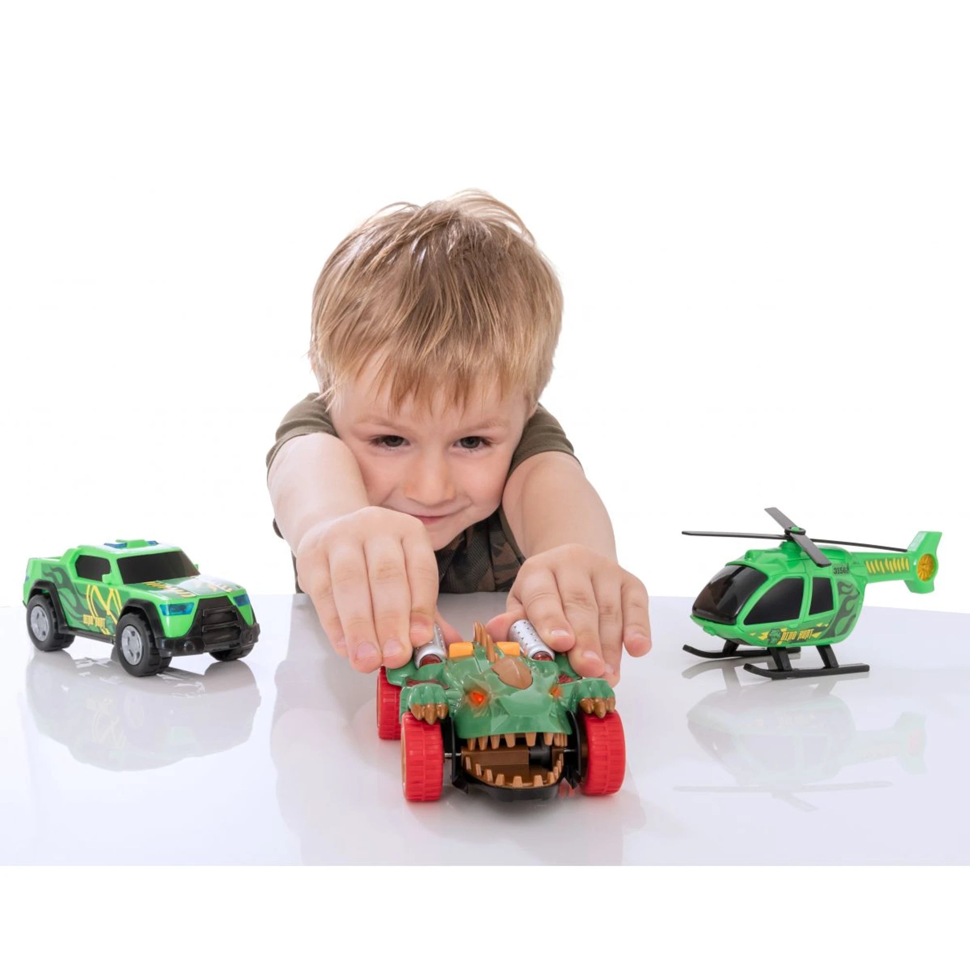 Dino Hunt pick-up spolu s helikoptérou servíruje lovcům prehistorických zvířat akci jak z blockbusteru. Se světly a zvuky se dinosaurus... Číst více
