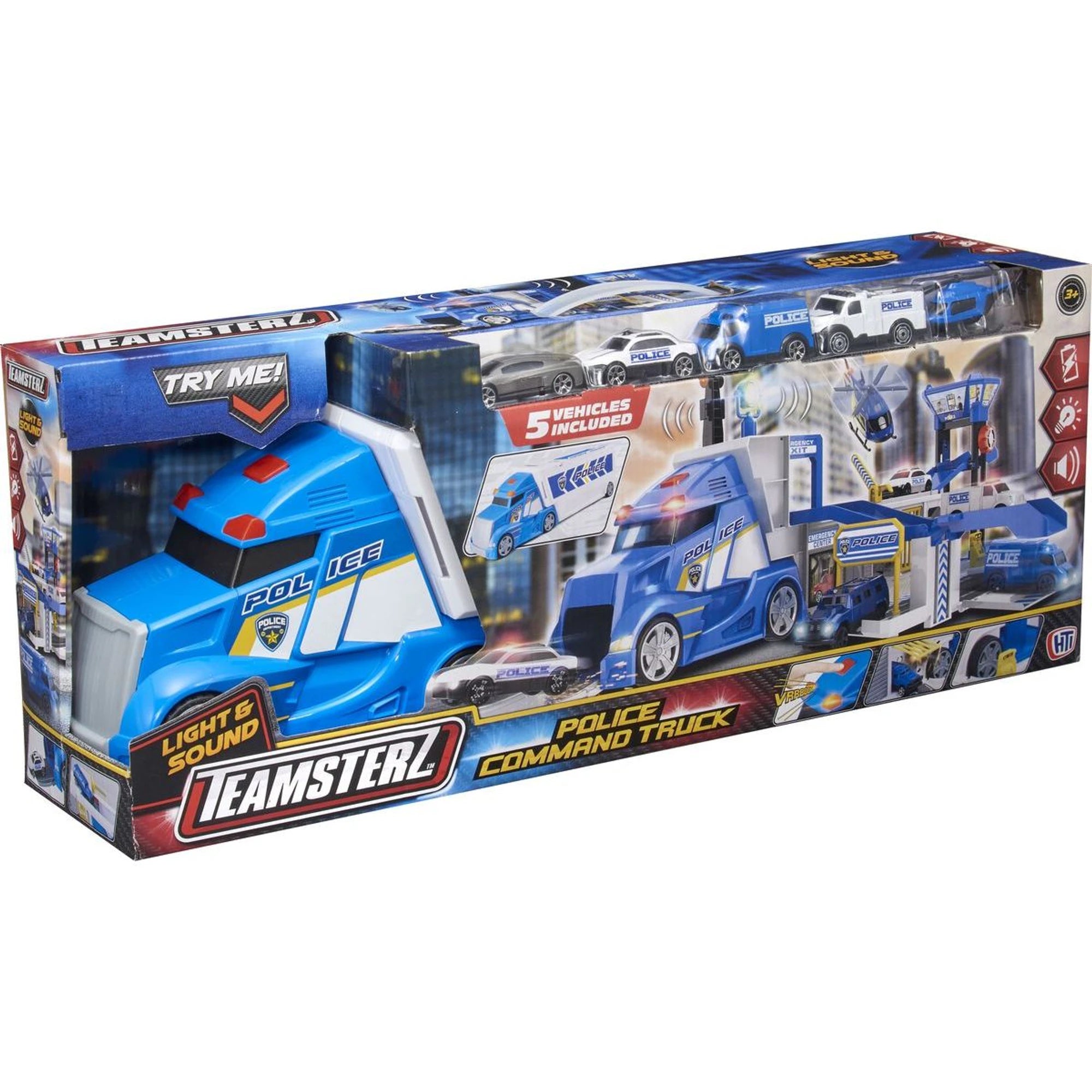Policejní kamion nastartuje doma akci jak z televizní kriminálky – bez papírování, zato s kupou zábavy. Přepravní auto je rozkládací a společně s autíčky se z něho během chvilky stane plnohodnotná policejní stanice.