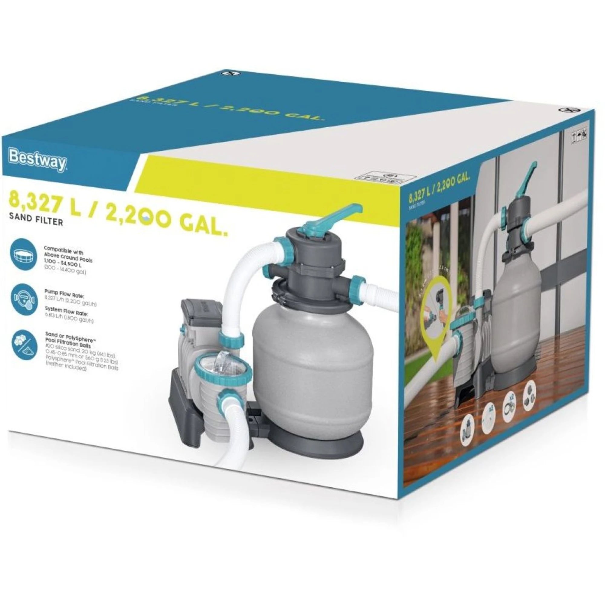 Křišťálově čistá voda v bazénu? S Bestway Pískovou filtrací 8327 L/2200 gal to jde skoro samo – nečistoty nemají šanci se tvářit, že tu bydlí.