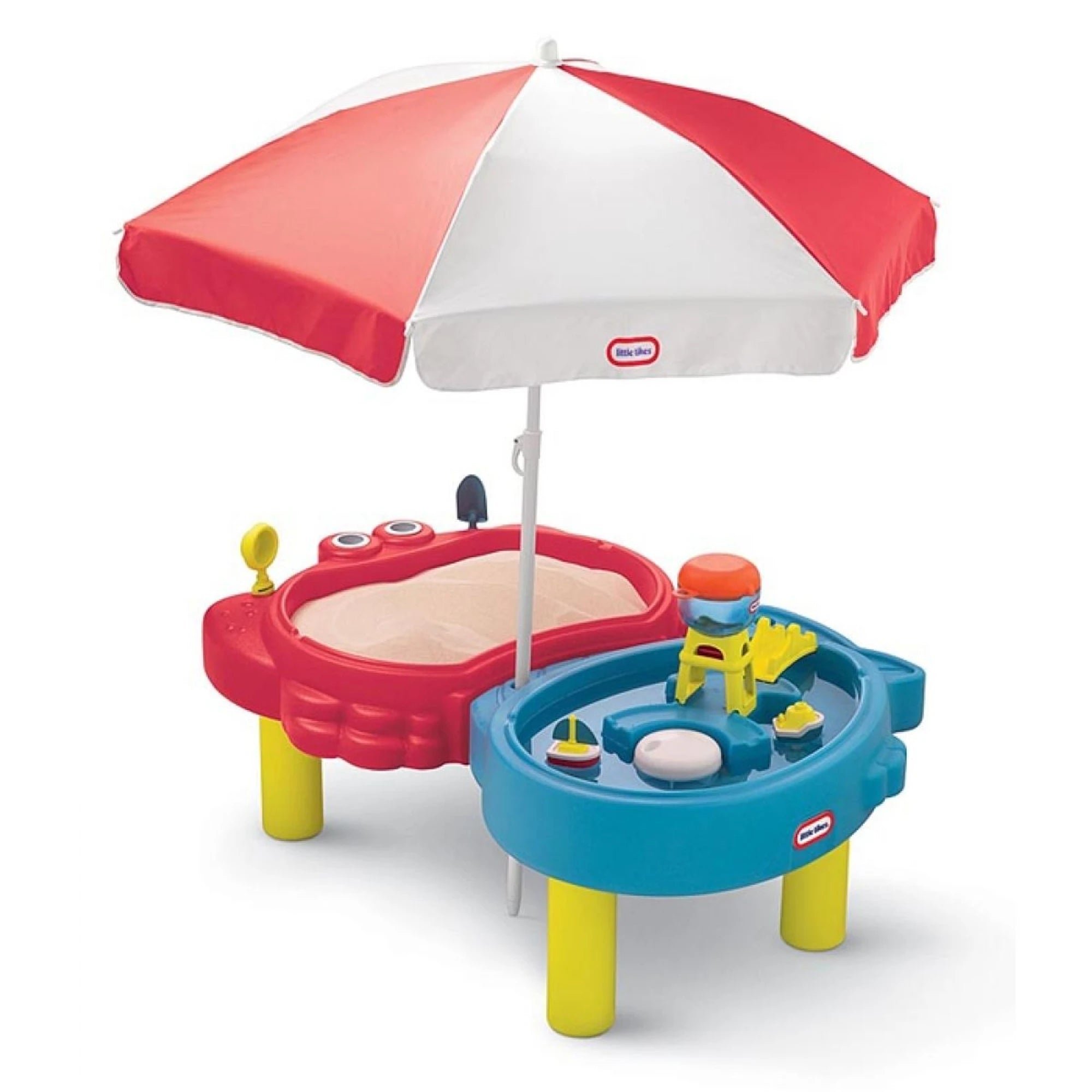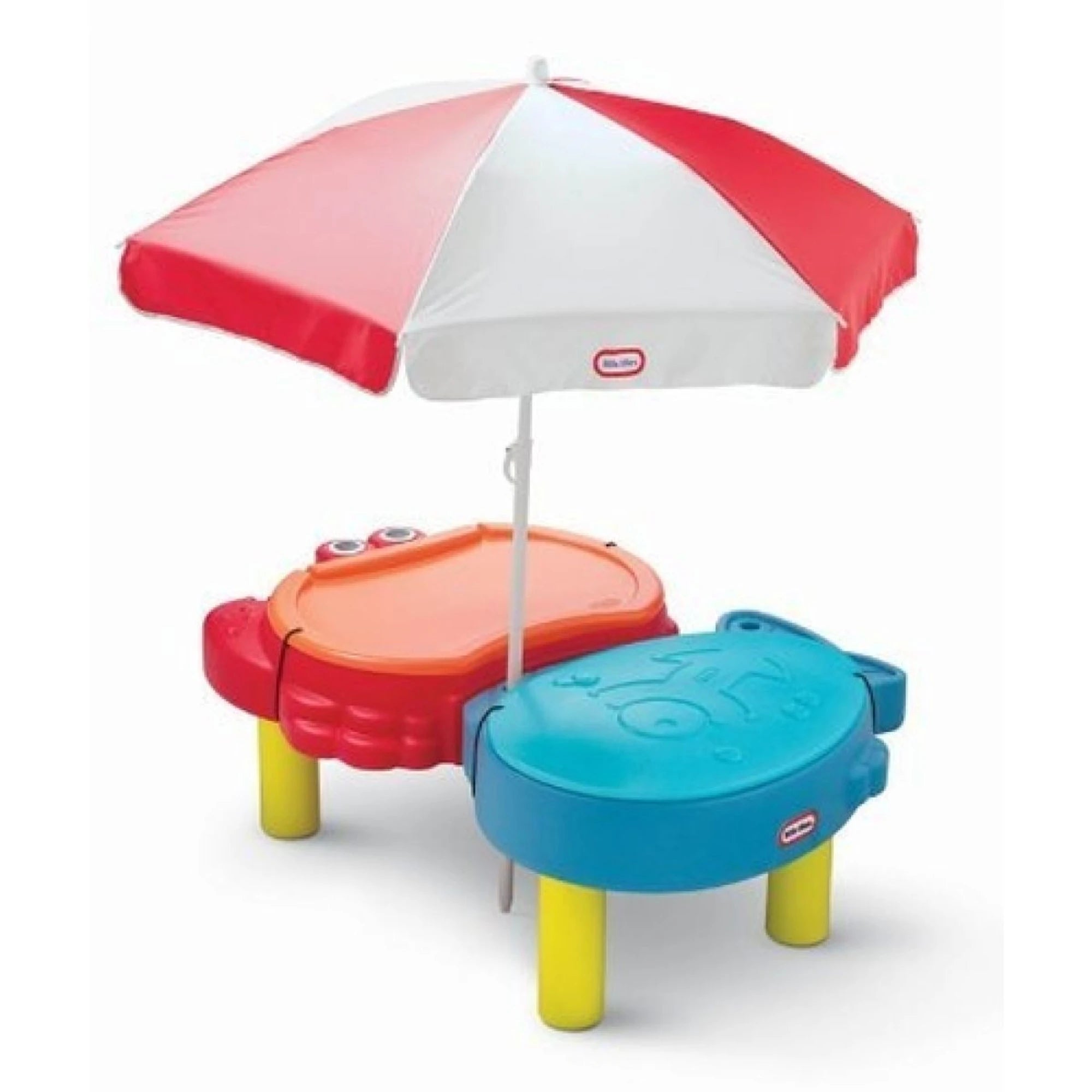 Dvojstolek se slunečníkem servíruje dětem hned dvě hrací plochy – dvakrát tolik dobrodružství, nula nudy.