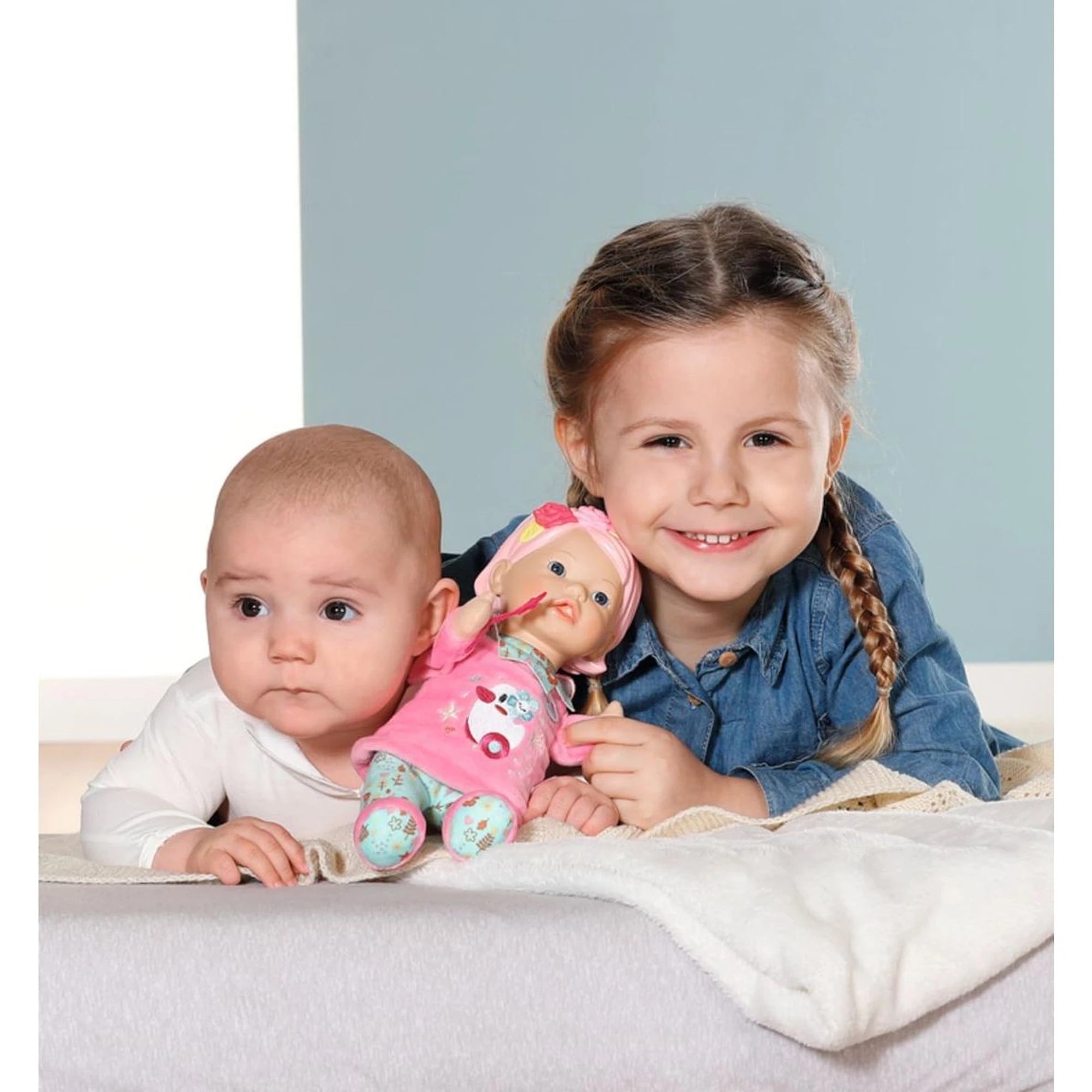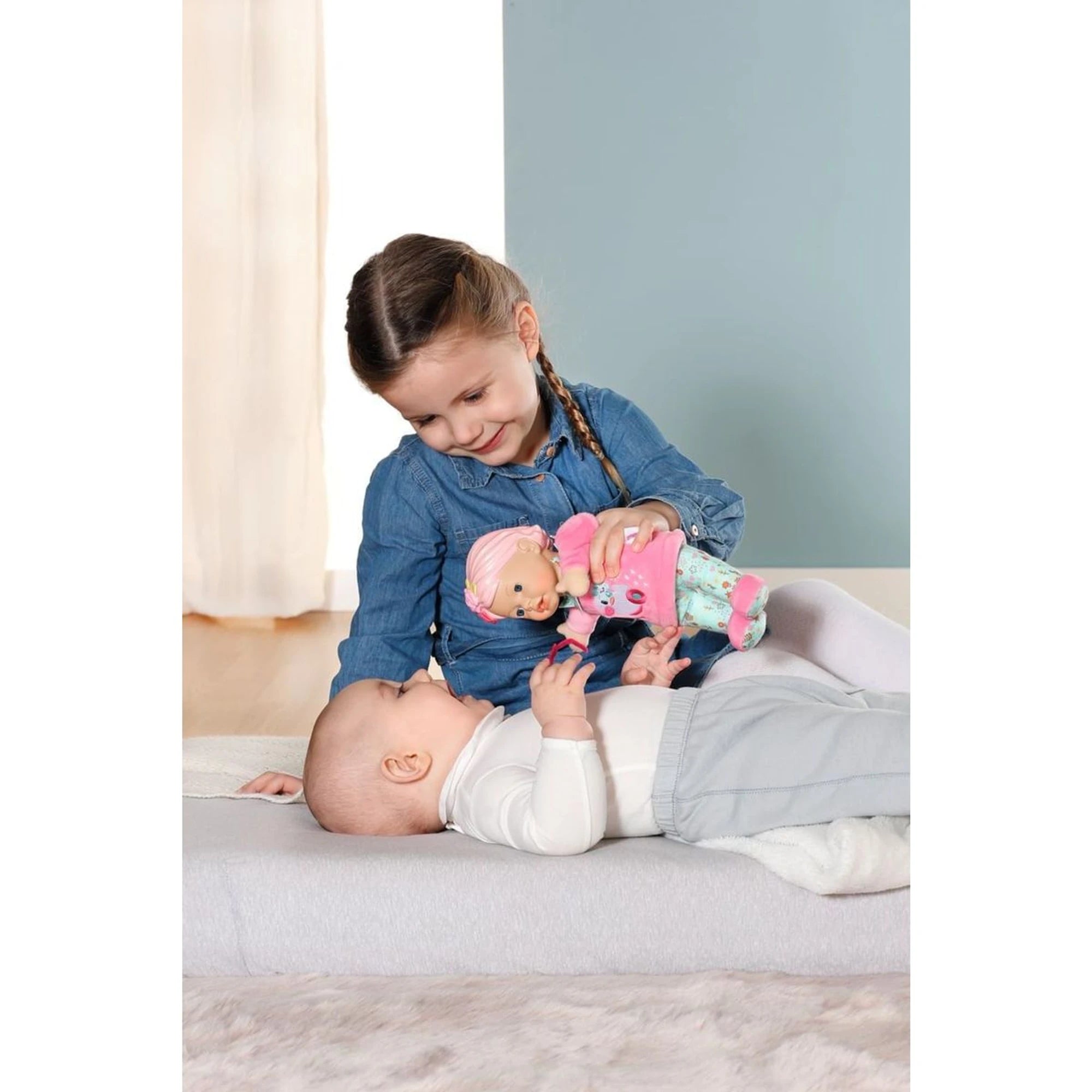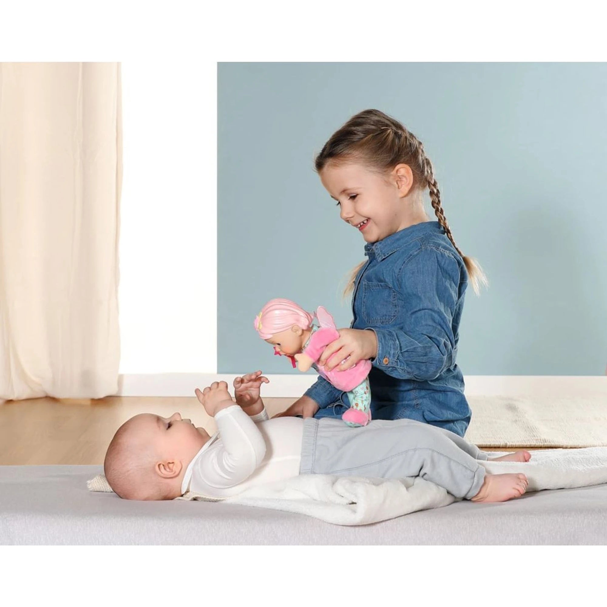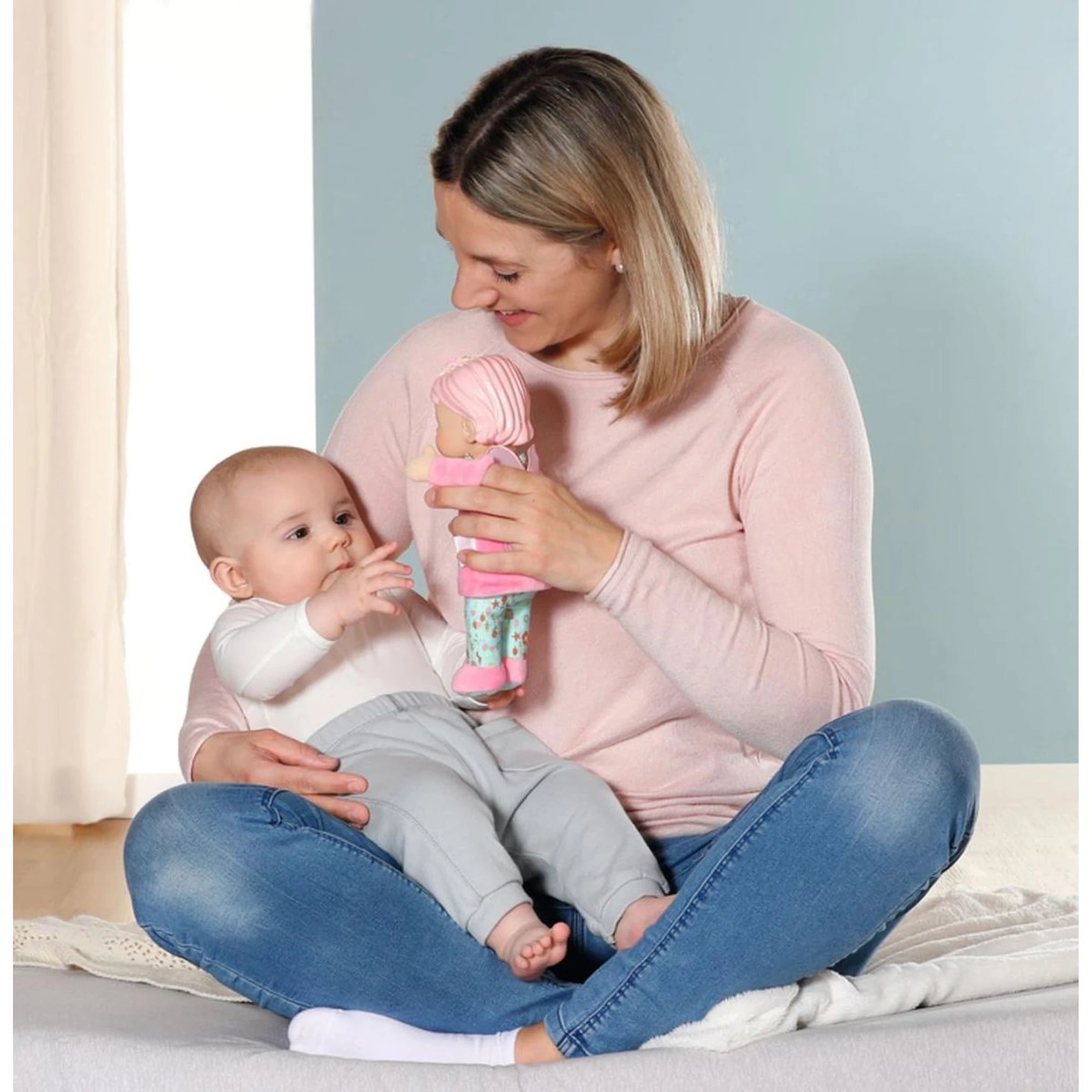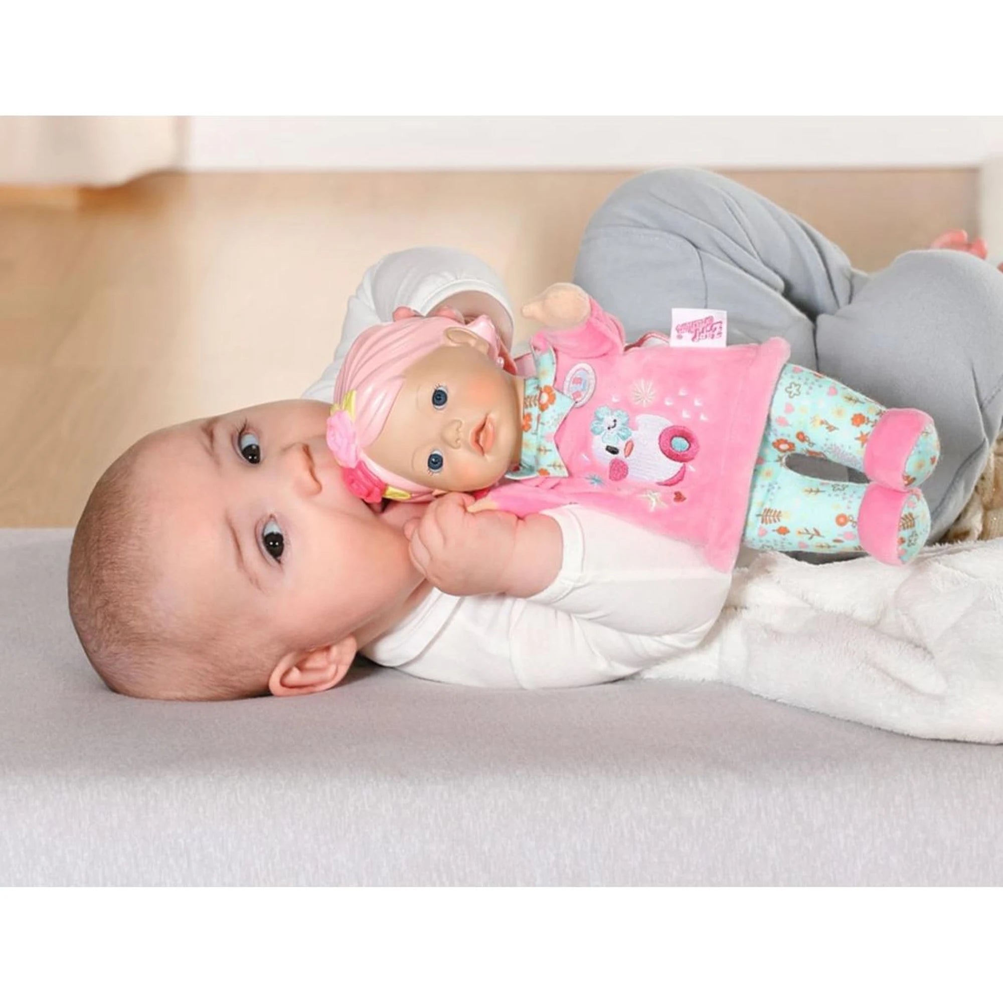 Panenka Baby Born, tentokrát jako něžná víla v růžových šatičkách s květinkami na hlavě. Má vinylovou hlavičku, tělíčko je ušité z látky a uvnitř se schovává měkká výplň. Přední část šatů zdobí výšivka kačenky Berty.