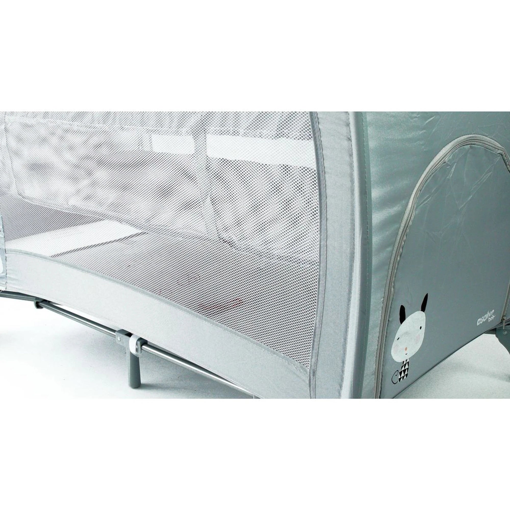 Šedá postýlka z voděodolného materiálu je spací bunkr na cesty – praktický pomocník pro ukládání malých cestovatelů ke spánku. Já Fantarius vím, že dobrý spánek je poklad i mimo domov. Její nosnost je 15 kg.