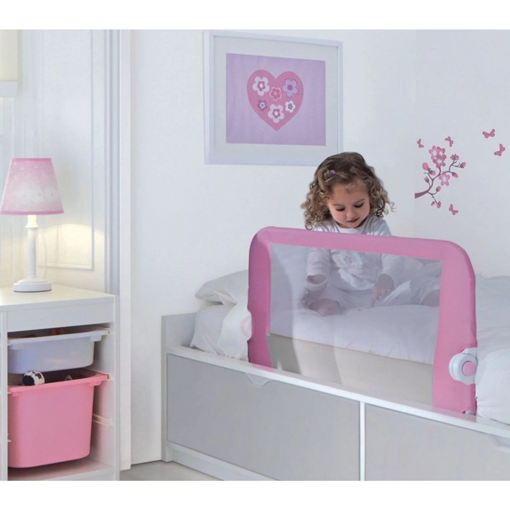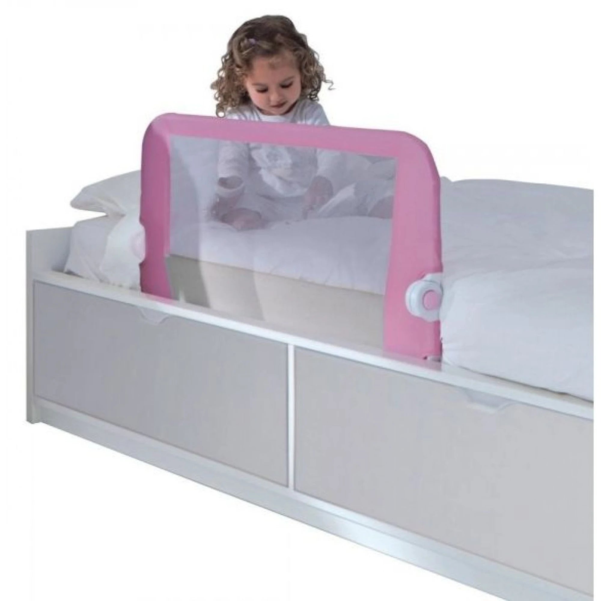 Růžová lehká zábrana, co dělá bodyguarda ve světě snů – spolehlivě zabrání nechtěnému pádu z postele.