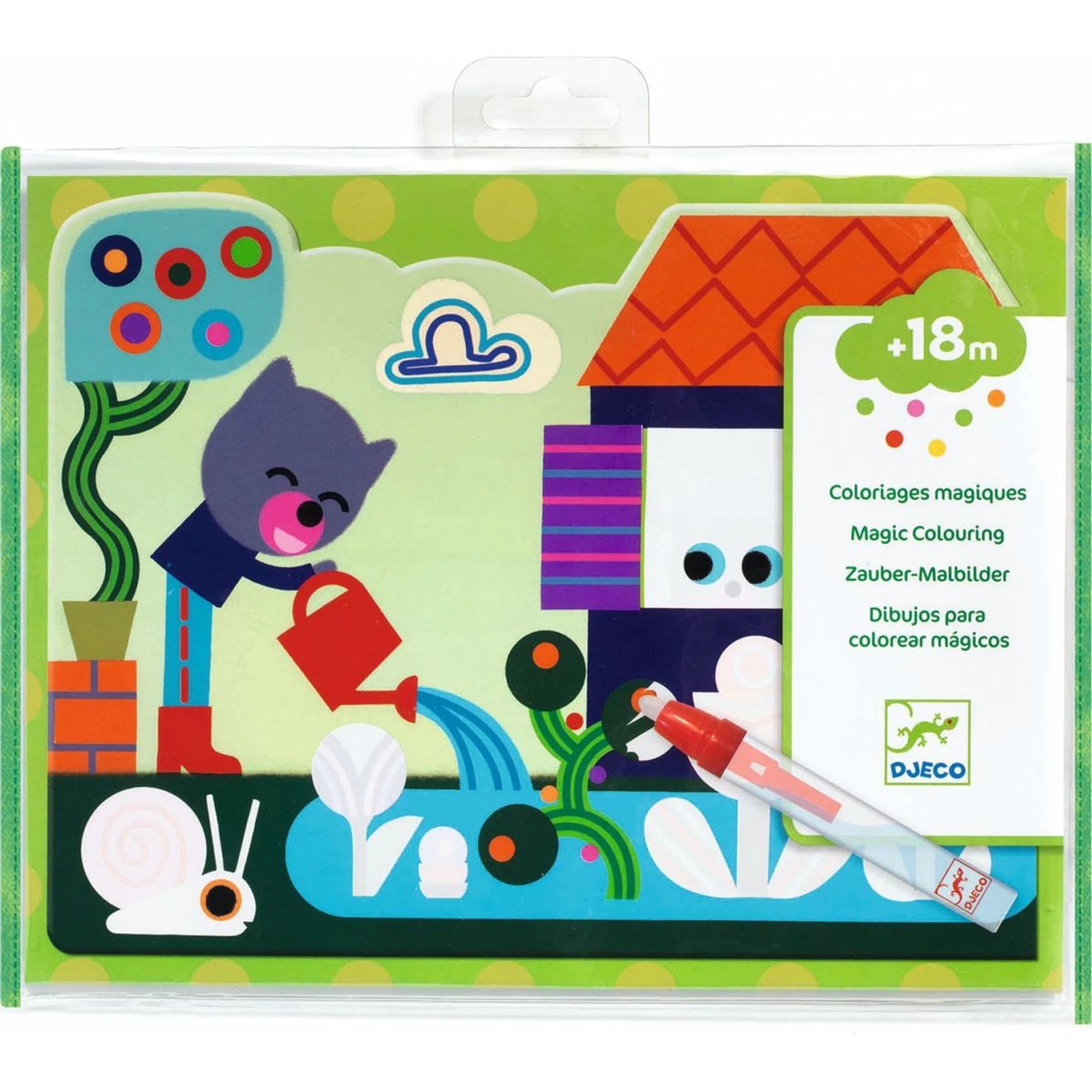Zvířátka žijící v lese čekají, až je malí průzkumníci odhalí na 4 obrázcích – stačí přejet magickou tužkou. Tužku před startem naplnit vodou a pak hop: pár tahů a barvy vyrazí ze skrýše. Barevný obrázek zůstane na očích, dokud je mokrý; po vyschnutí se zase schová pod bílou clonu. A to nejlepší? Může se odkrývat znovu a znovu.