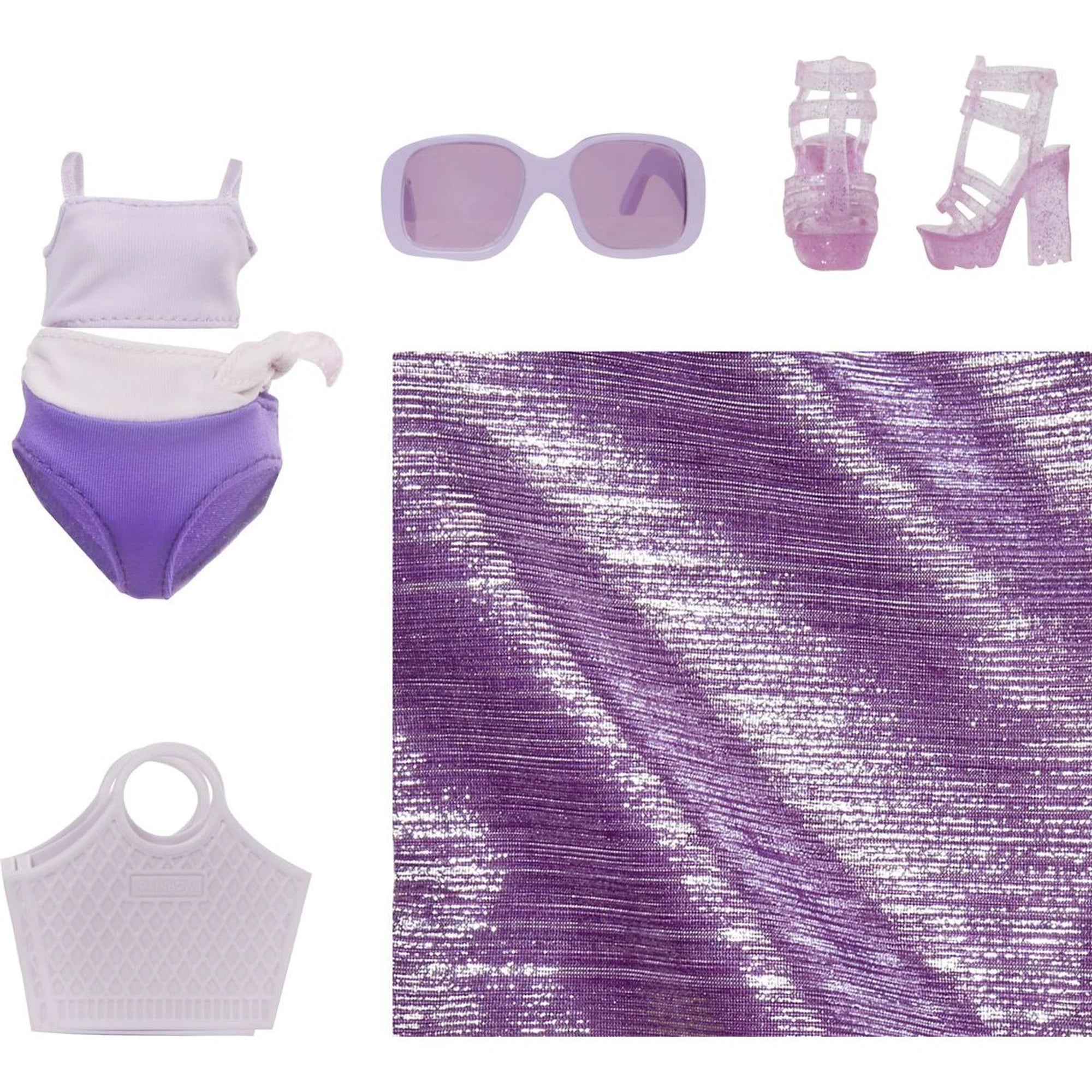 Má jednodílné plavky a přes pas lehoučký šátek. Doplňkem jsou sluneční brýle. Celá je sladěná do fialové, včetně kadeřavých vlasů. V balení je spousta doplňků a šátek, se kterým lze vytvořit více než 10 looků.