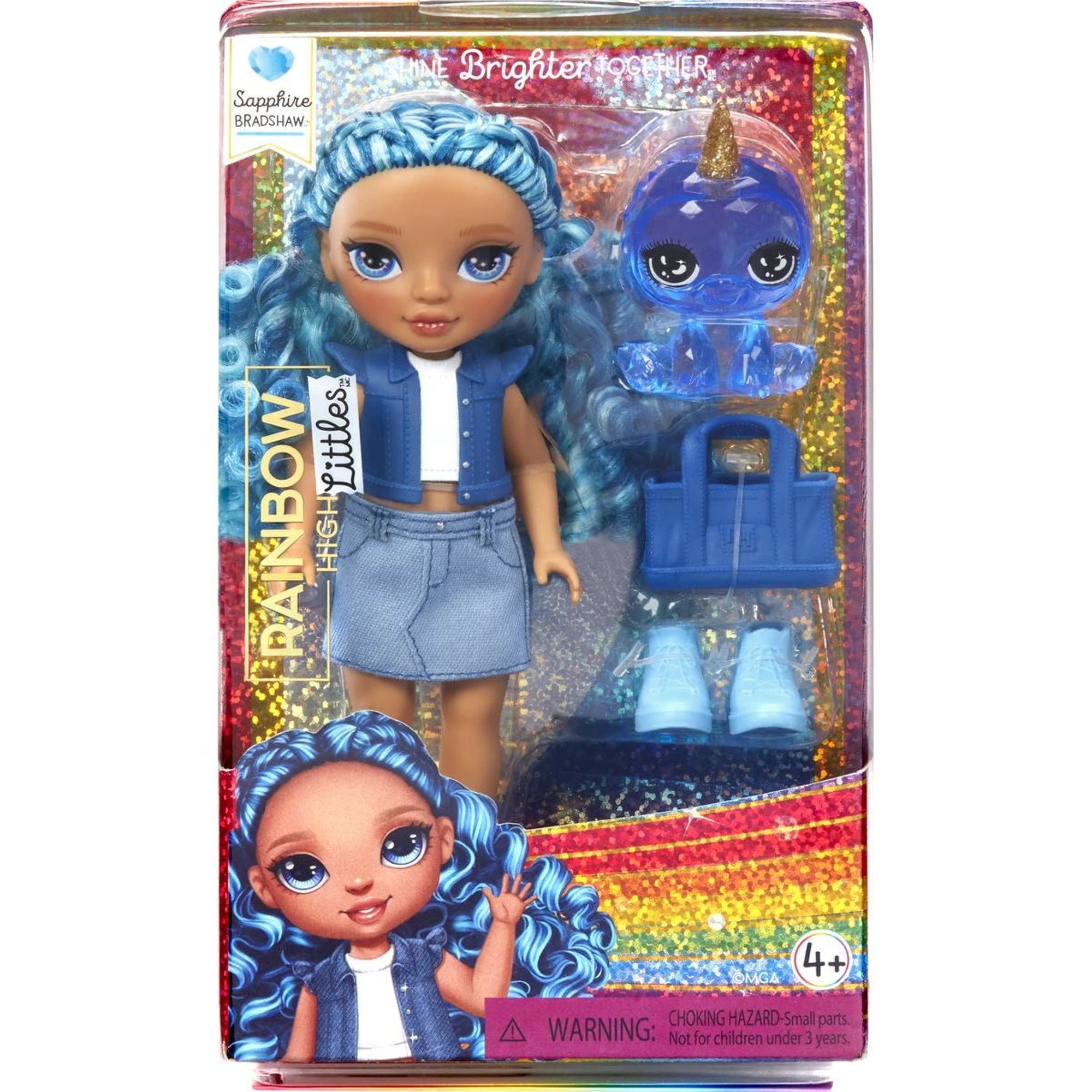 Sapphire Bradshaw je sladěná do sytě modré barvy, co má šmrnc, a patří do edice malých sestřiček panenek Rainbow High.