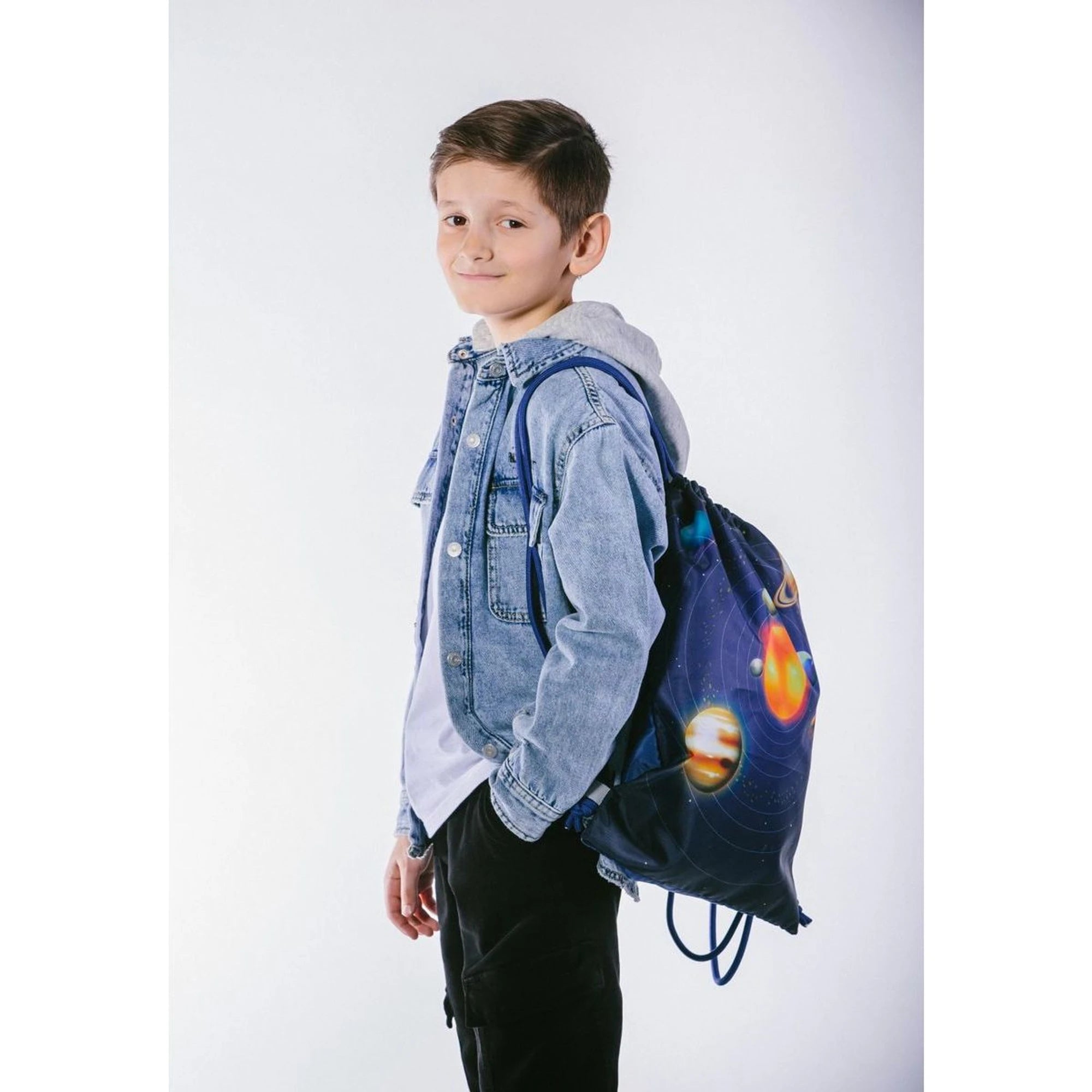 Set pasuje školáčkům s výškou postavy 110 – 135 cm jako ulitý. Je složen z ultralehkého batohu, penálu a sáčku na přezůvky – tři parťáci připravení na školní dobrodružství.
